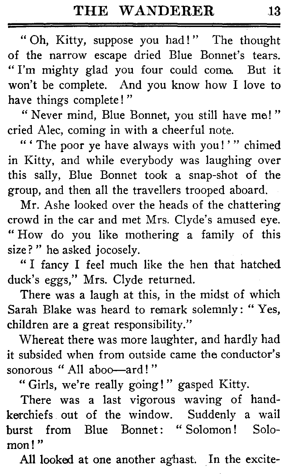 "Uncle Cliff," she declared impatiently, "if The Wanderer doesn't move a little faster I'll simply have to get out and push!"