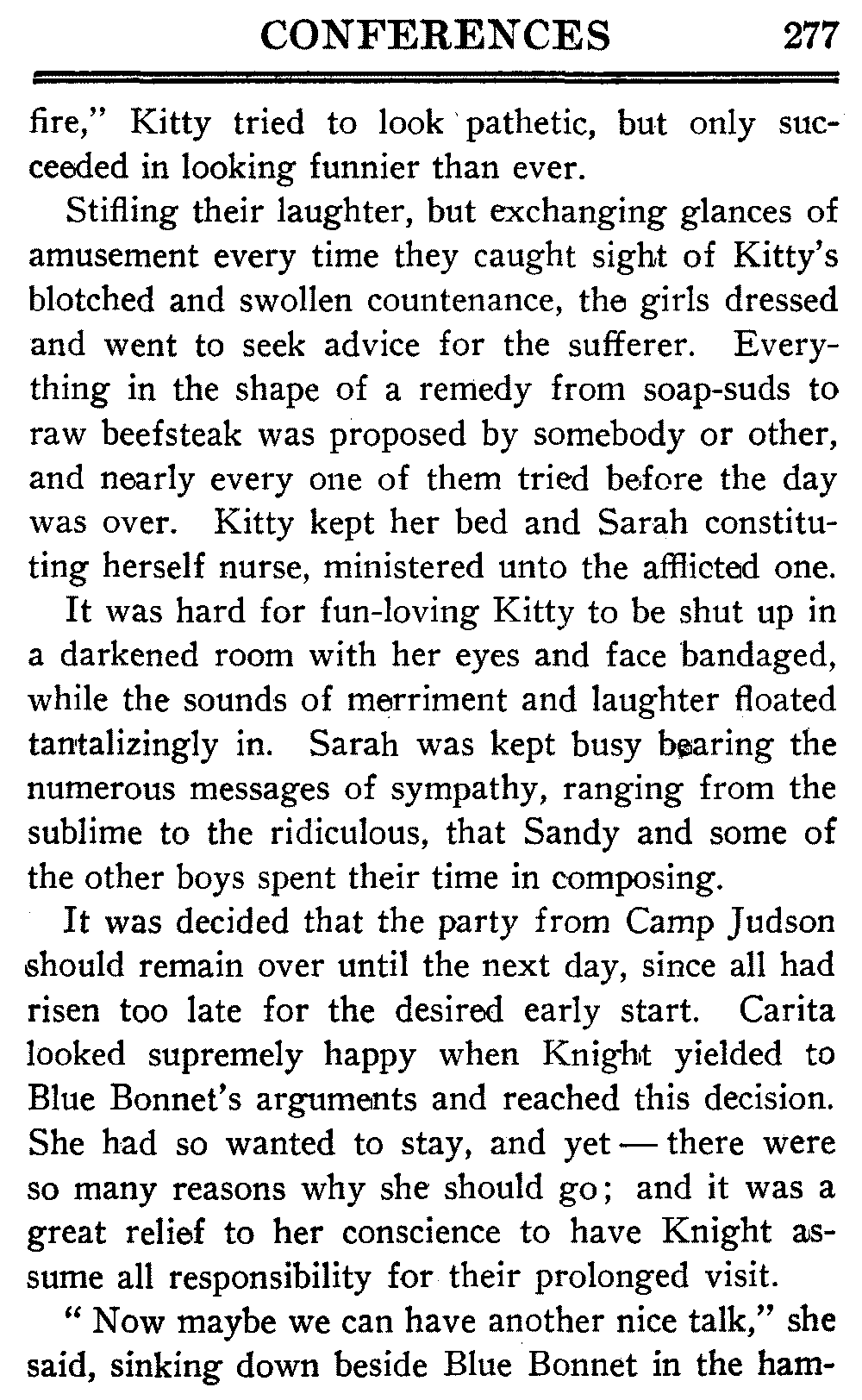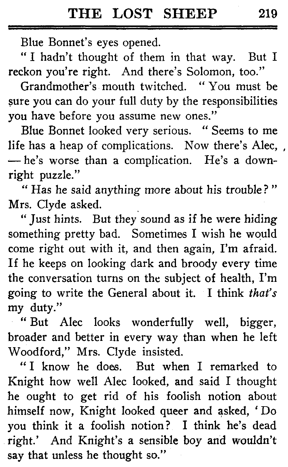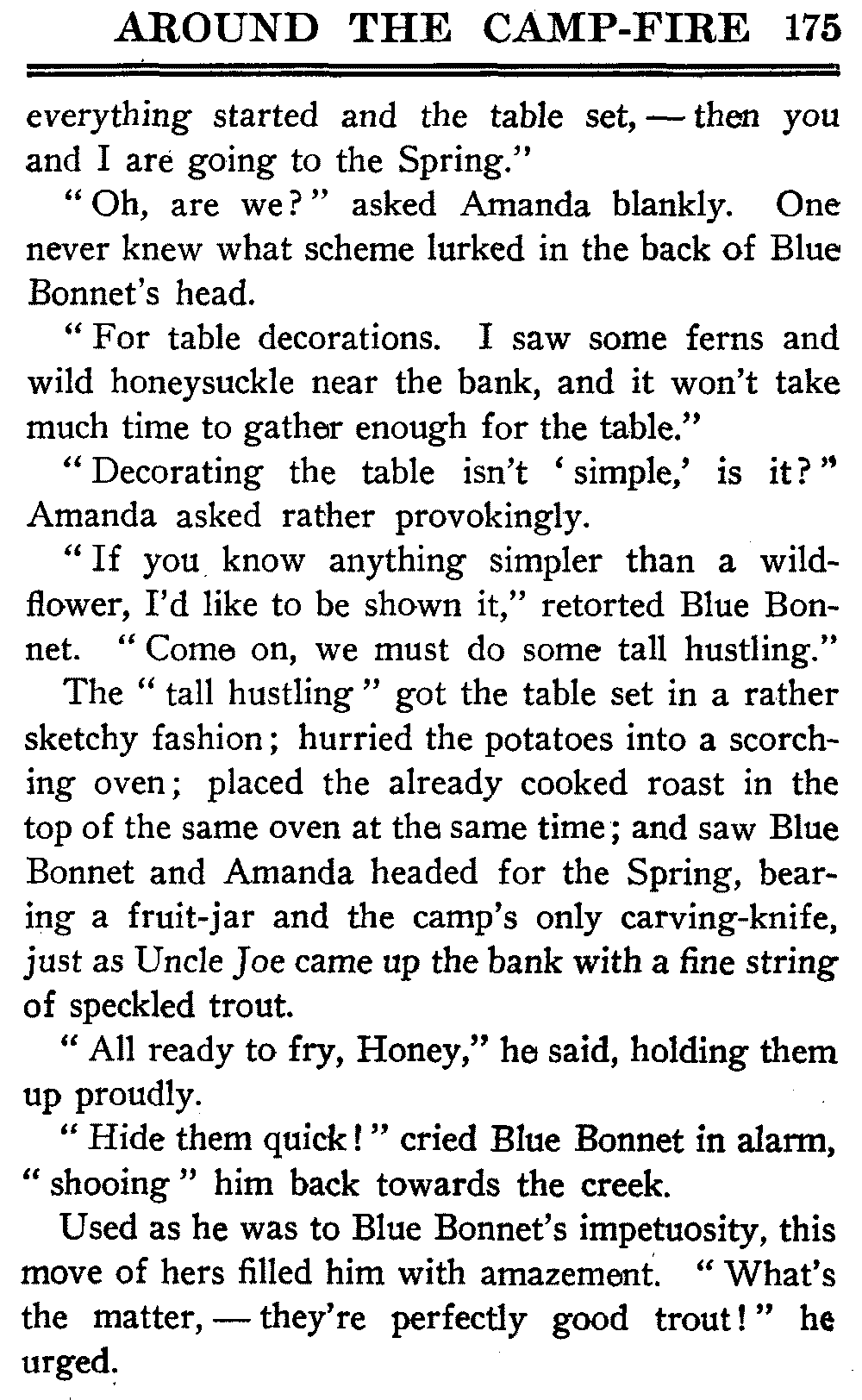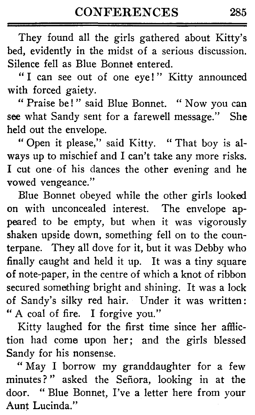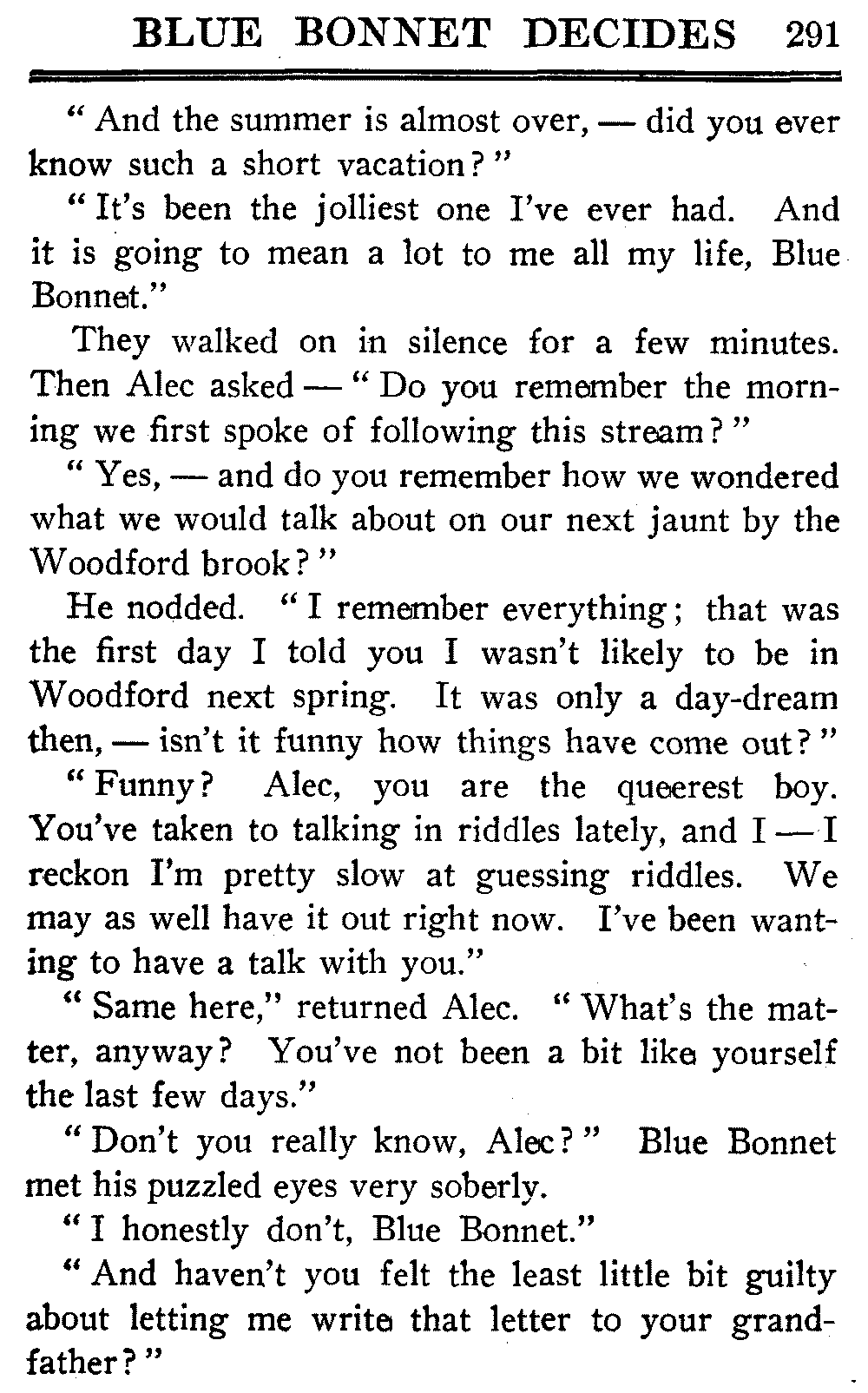 "I see," Blue Bonnet nodded. "But don't tell Aunt Lucinda,—I fancy she doesn't approve of smoking."