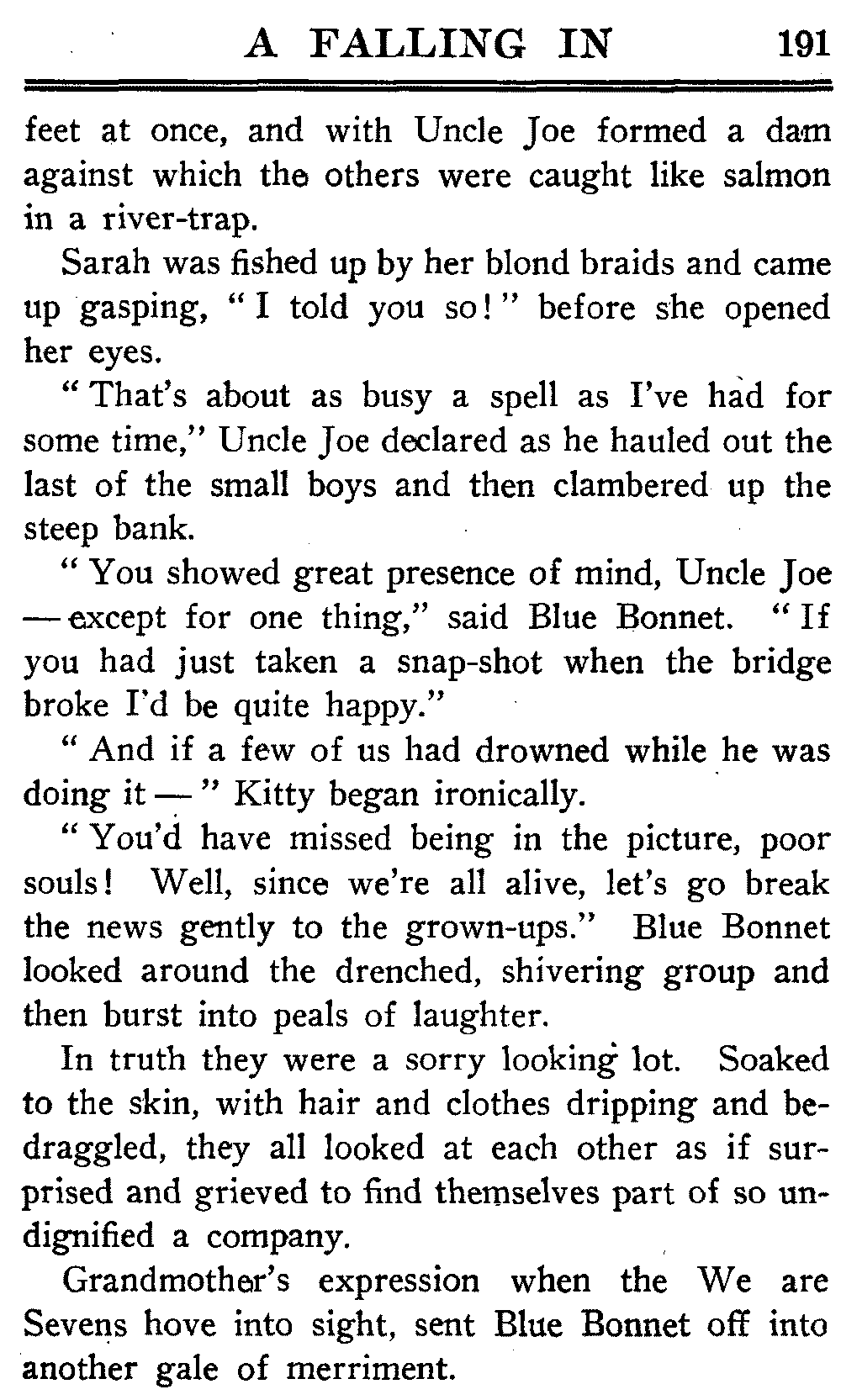 "Used to travelling! Why, Uncle Cliff—" Blue Bonnet shook her head emphatically—"not one of the other We are Sevens has ever so much as seen the inside of a Pullman in all her life!"
