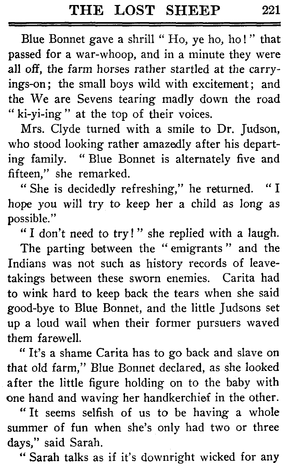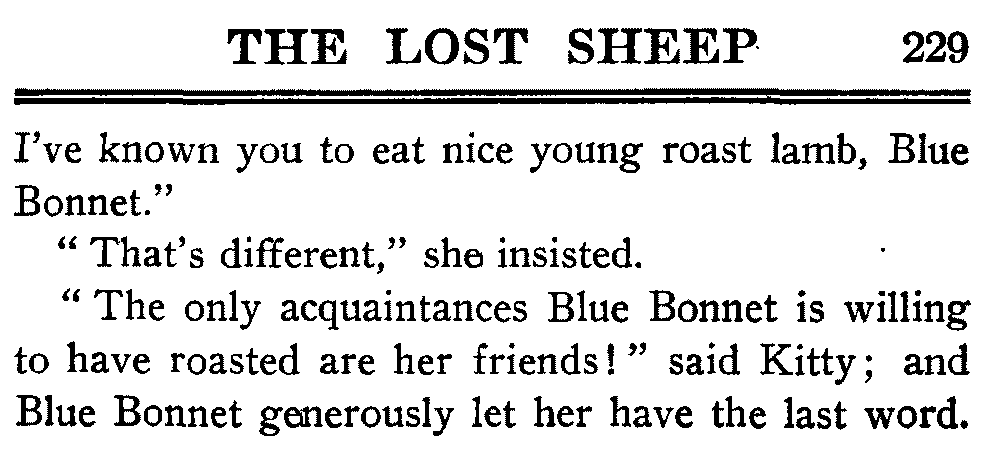 "You can't pretend a bit well," Blue Bonnet assured him gravely. "You look just the way my dog Solomon does when he's pretending to be asleep—and can't keep his tail from wagging!"