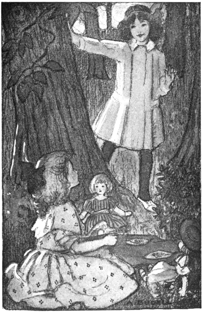 Dolly scrambled through, somehow, and the two children that emerged on the other side of the brush were quite different in appearance from the two sedate-looking ones that Mr. Halkett had left behind him.