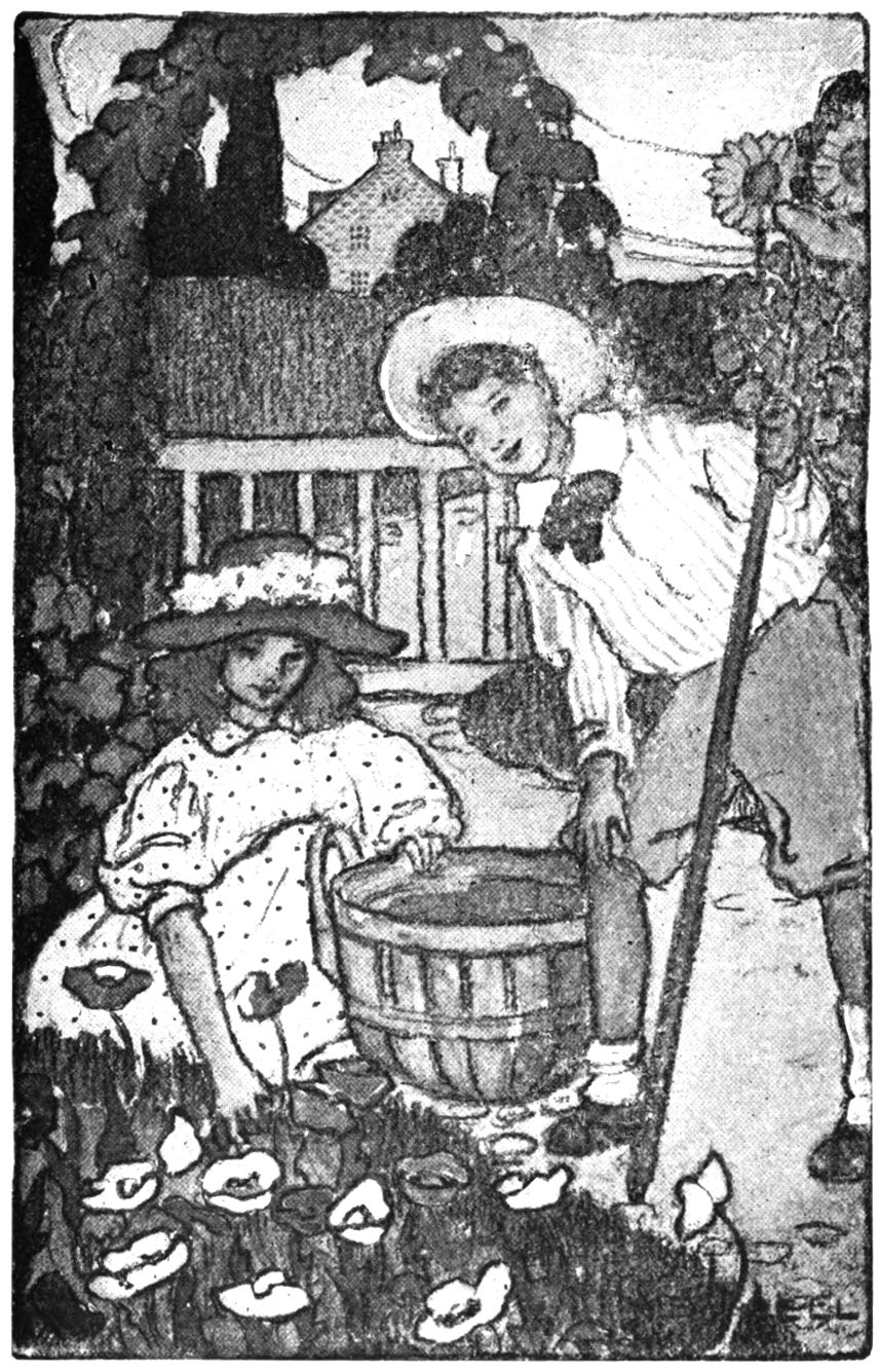 Leaning over the mossy bank to reach the water caused fearful green stains on white piqué and on light-grey knickerbockers. Hands became grimy, and faces hot and smudgy. But blissfully careless of all this, the children frolicked and capered about, rejoiced to find the delightful country spot and quite oblivious to the fact that they were on their way to their new home.