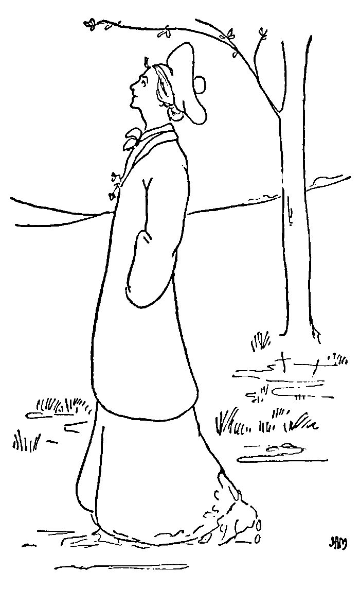 In the spring its calls are especially urgent. I know popular sympathy leans toward springtime in the country, but for my part, as soon as March has blown itself away, and April comes whirling along the cleared path of the year, I hurry to keep my annual appointment to meet Spring in New York. The trees are budding in the parks, daffodils and tulips are blooming riotously on the street-corners, while hyacinths and lilacs blossom along the curb. A pearl-colored cloud is poised in that intense blue just above the Flatiron Building, and the pretty city girls smile as they prank along in their smart spring costumes behind their violet mows. The birds twitter with a sophisticated chirp, and the street-pianos respond with a brisk sharpness of tune and time. The very air is full of an urban ozone, that is quite different from the romantic lassitude of spring in the country.