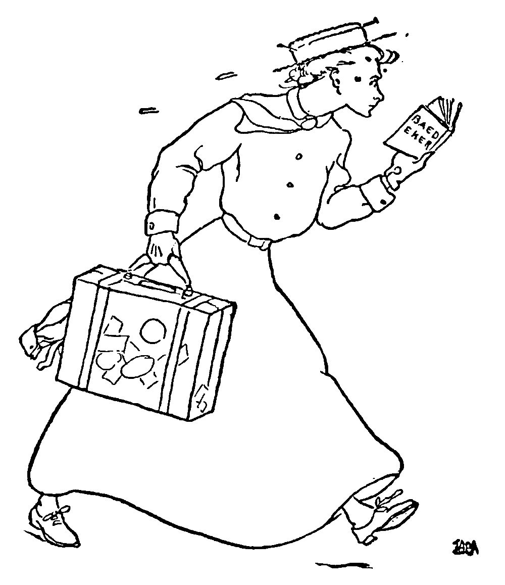 This was easily remembered, for taken as a whole it included every possible way of doing anything. Said one: “Pack your trunks very tightly, for clothing carries much better that way.” Said another: “Pack your trunks very loosely; for then you will have room to bring home many purchases and yet declare at customs only the same number of trunks as you took with you from America.” Said a third: “Let me help you pack, for if a trunk is crammed too tightly or filled too loosely, it makes all sorts of trouble.”