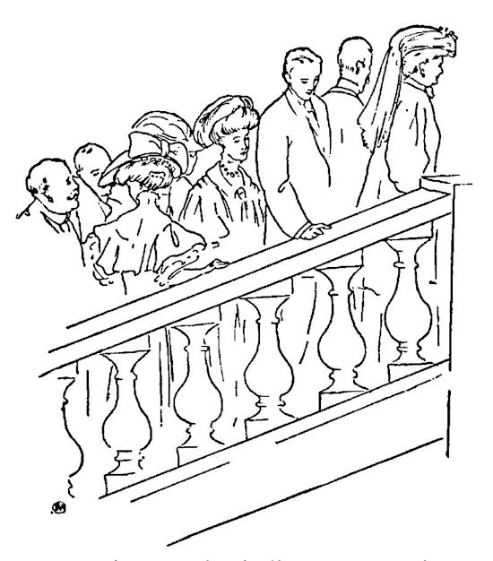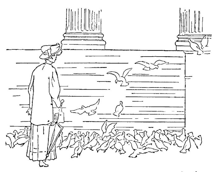 And so, as I, Emily Emmins, spinster, have the full courage of my own convictions, I found myself one crisp April morning walking happily along the lower portion of Broadway. Impulse urged me on toward the Battery, but, as often happens, my impulse was side-tracked. And all because of a woman’s smiling face. I was passing the offices of the various steamship companies, and I saw, coming down the steps of one of them, a young woman whose countenance was positively glorified with joy. I couldn’t resist a second glance at her, and I saw that both her hands were filled with circulars and booklets.