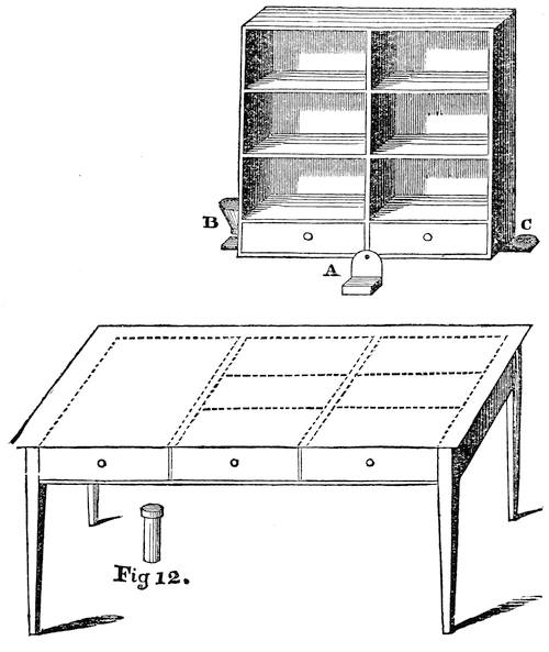 “Near at hand should be another board 3 feet long and 4 inches wide, across which each crayon, as it is made, should be laid, so that the ends may project on each side—the crayons should be laid in close contact, and straight. When the board is filled, the ends should all be trimmed off so as to make the crayons as long as the width of the board. It is then laid in the sun, if in hot weather, or if in winter, near a stove or fireplace, where the crayons may dry gradually, which will require twelve hours. When thoroughly dry they are fit for use.