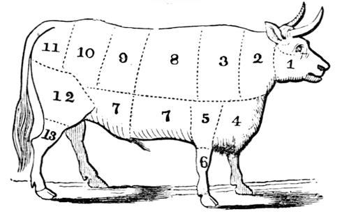 Marketing—Beef—Different “Cuts,” etc.—Veal—Mutton—Pork—Poultry—Fish—Shell-fish—Care of Meats—To salt down Beef—To cleanse Calf’s Head and Feet—To prepare Rennet—To salt down Fish—To try out Lard—Molasses-cured Hams—Brine for coming Hams, Beef, Pork, etc.—Another—Brine by Measure—To salt down Pork—To prepare Cases for Sausages—Sausage Meat—Another Recipe—Bologna Sausages—To smoke Hams 18