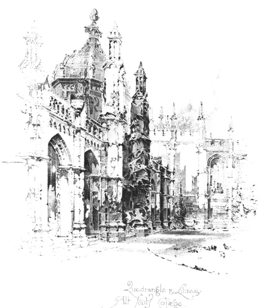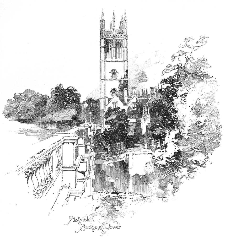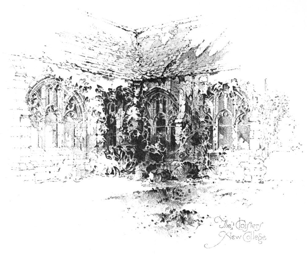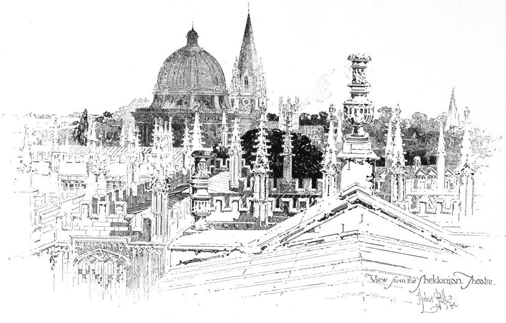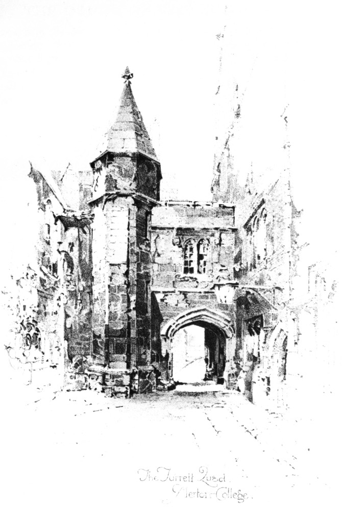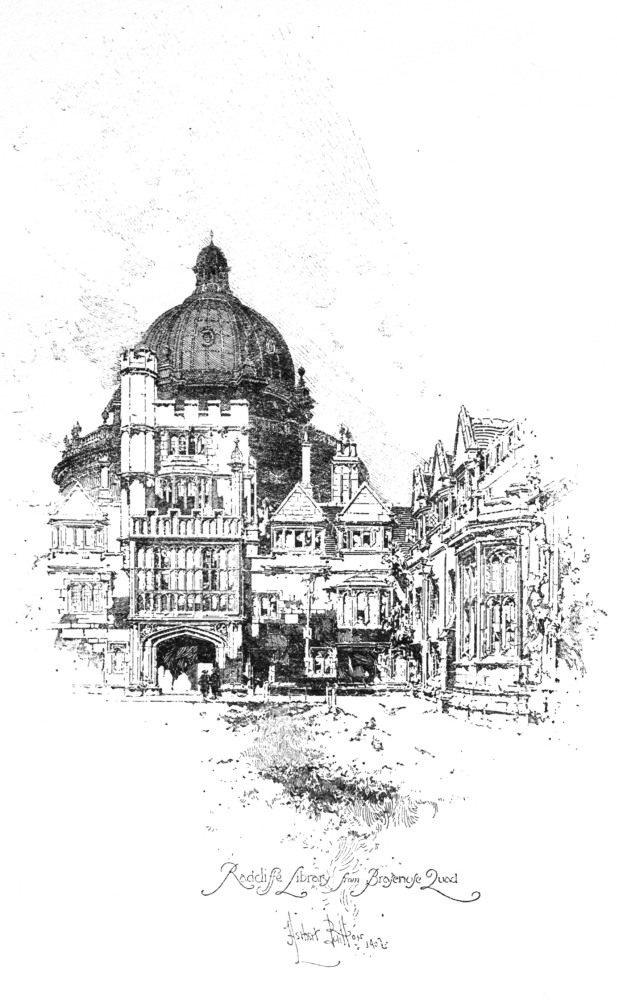 Even as it is, I have been unavoidably compelled to save space by omitting much that I had written and practically all my references and acknowledgments. Yet, where one has gathered so much honey from other men’s flowers not to acknowledge the debt in detail appears discourteous and ungrateful; and not to give chapter and verse jars also upon the historical conscience. I can only say that, very gratefully, J’ai pris mon bien où je l’ai trouvé, whether in the forty odd volumes of the Oxford Historical Society, the twenty volumes of the College Histories, the accurate and erudite monographs of Dr Rashdall (“Mediæval Universities”) and Sir Henry Maxwell Lyte (“History of the University of Oxford to the year 1530”) or innumerable other works. Where so much has been so well done by others in the way of dealing with periods and sections of my whole subject, my chief business has been to read, mark, digest, and then to arrange my story. But to do that thoroughly has been no light task. Whether it be well done or ill-done, the story now told has the great merit of providing an occasion, excuse was never needed, for the display of Mr Herbert Railton’s art.