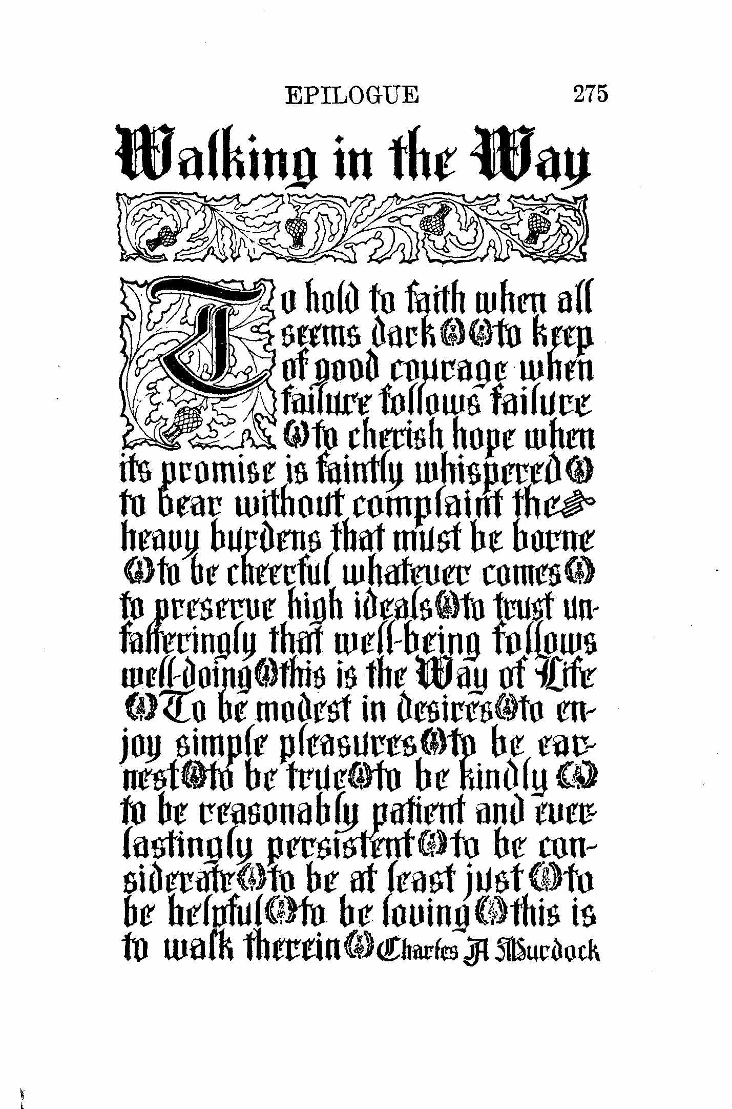 With vision calm, she sees her course, Nor shrinks, though thorny be the way. Shall human will succumb to fate, Crushed by the happenings of a day?