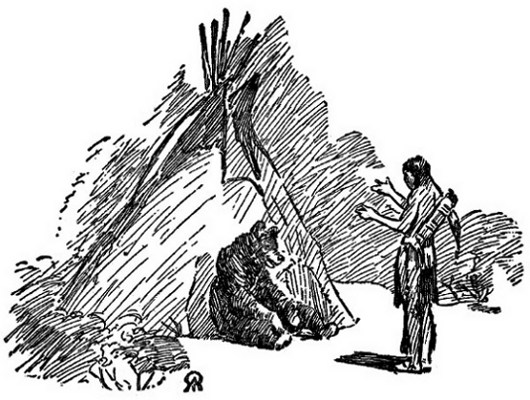 All by itself at the further end of the village stands the teepee of Smoky Day, the old story-teller, the school-master of the woods. The paths that lead to this low brown wigwam are well beaten; deep, narrow trails, like sheep paths,[4] in the hard-frozen snow.