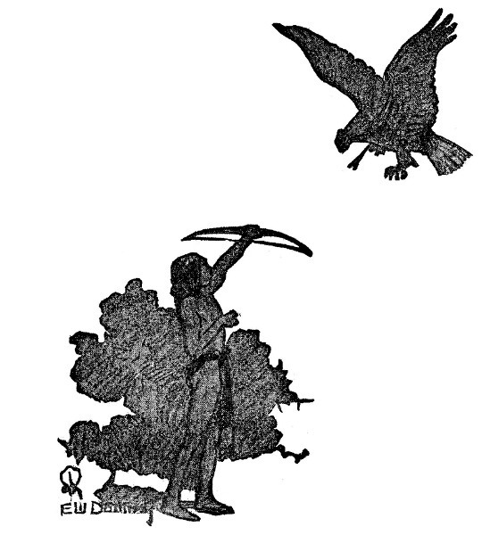 Soon after, he heard that the people of the large village were in trouble. A great Red Eagle, it was said, flew over the village every day at dawn, and the people believed that it was a bird of evil omen, for they no longer had any success in hunt[241]ing. None of their braves had been able to shoot the Eagle, and the chief had offered his only daughter in marriage to the man who should kill it.