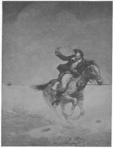 “Do you reckon we’re goin’ to break our necks, you piebald outlaw,” the rider said to the pony. “Well,” as the animal whinnied gently at the sound of his voice, “there’s some people that do, an’ if you’ve got any respect for them you’ll be mighty careful.”