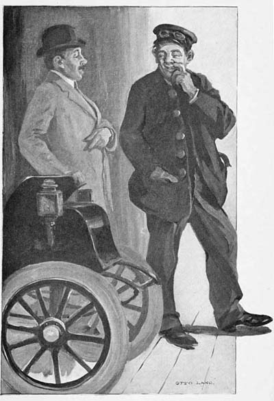 “But I won’t, sir. These automobiles are very powerful, and one[80] of them turned over a news-stand not long since and upset the stove in it, and nearly burned up the newsman. But there’s a plenty of time for it to stop. I don’t have to hurry back.”
