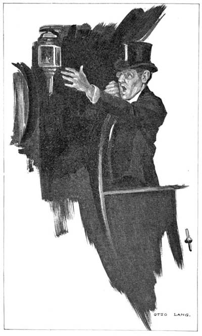 In evening clothes and bare-headed, Mr. Marten ran to Fortieth Street, and saw the vehicle approaching Sixth Avenue, its occupant still hurling strong language upon the evening air. Mr. Marten is something of a sprinter, although he has passed the fifty mark, and he resolved to solve the mystery. But before he had covered a third of the block in Fortieth Street he saw that he could not hope to[85] overtake the runaway automobile, so he turned and ran back to the house, rightly surmising that the driver would circle the block.