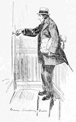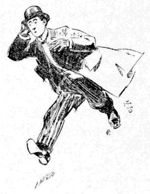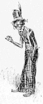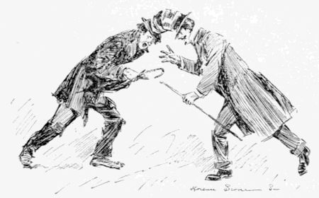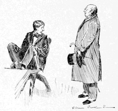 “It is you who are calling,” said he, averting his eyes. Then he assumed the voice and manner of a “lecturer” in a[11] dime museum, and rattled along as follows: