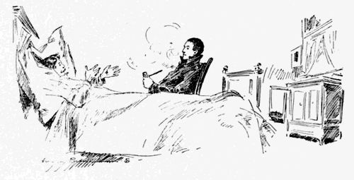 When they were two months old I determined to test my theory. I procured some meat from the larder of a gormand friend of mine, and brought it into my guest-chamber in an air-tight box. Then I opened the box and awaited developments. If flies are natural-born birds of carrion, then they would rush upon this stuff with avidity. I hid behind the arras—if I am quite sure what arrases are—and watched my little pets with some concern. They flew over to the meat, sniffed it disdainfully, buzzed with ire for a few seconds, and then flew to the ceiling with every appearance of disgust. Then the largest one signaled to his fellows, and they flew down once more, lifted the “condemned beef” in their talons as firemen seize a life-preserving net, and sailed to the open window, where they dropped it. In five minutes’ time it was black with flies that had not received proper nurture. Was I pleased? I was delighted. I set forth a feast of sugar on top of my bald head, and[241] sat in the guest-chamber until my pets had made an end of eating.