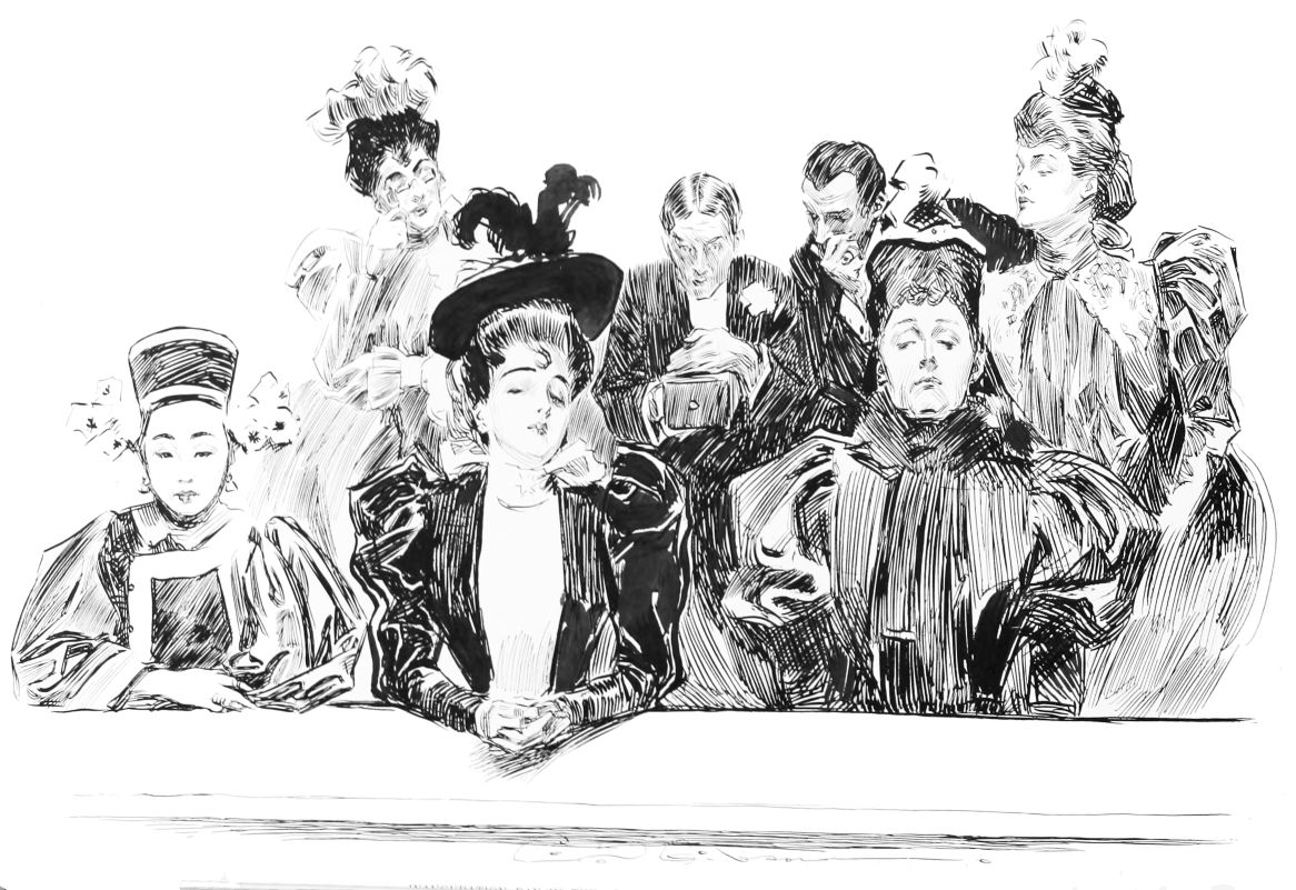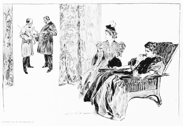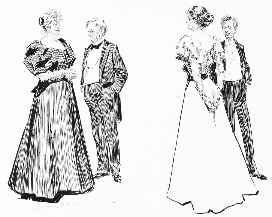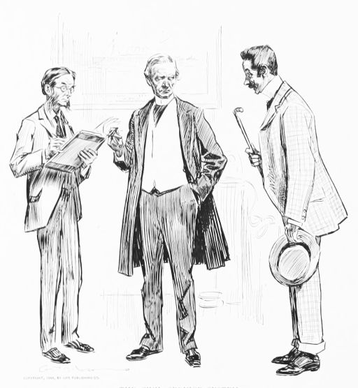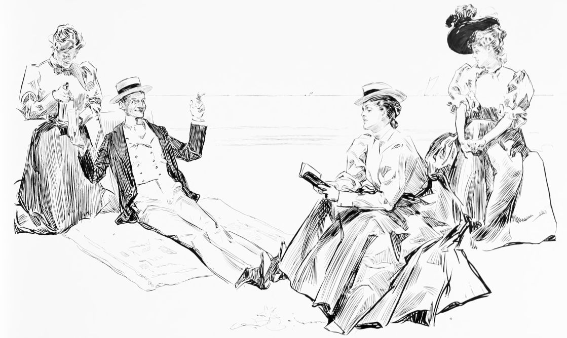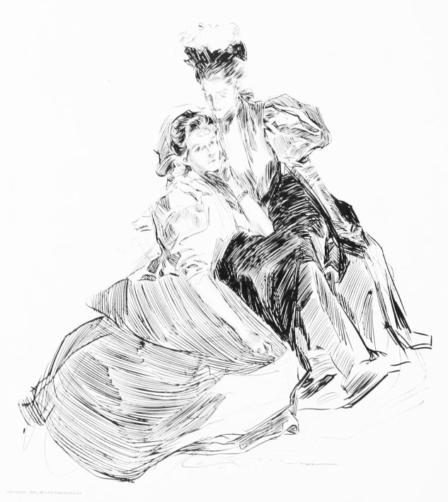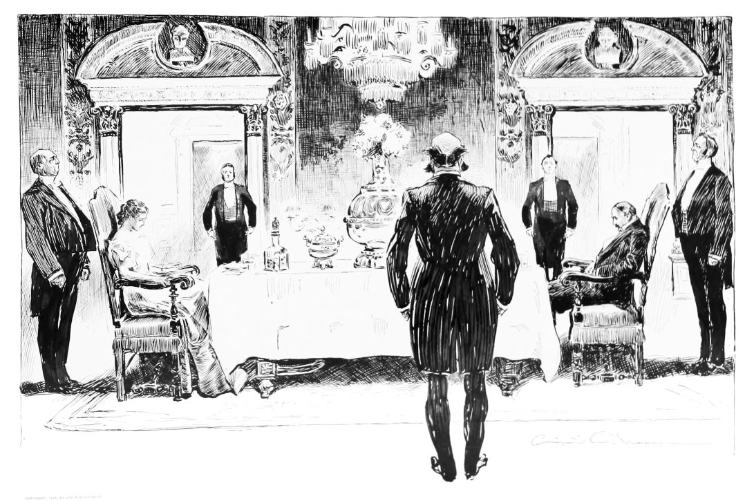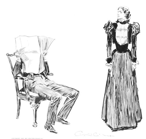 THIS is the third book in the regular series of Mr. Gibson’s published drawings, the first one being entitled “Drawings by C. D. Gibson,” the second, “Pictures of People.” Each book contains eighty-four of Mr. Gibson’s best cartoons, and all are uniform in size, shape and binding. Thanks are due to Messrs. Mitchell & Miller, Charles Scribner’s Sons, The S. S. McClure Co. and Harper & Bros., for their kind permission to reproduce a number of the drawings included in this collection.