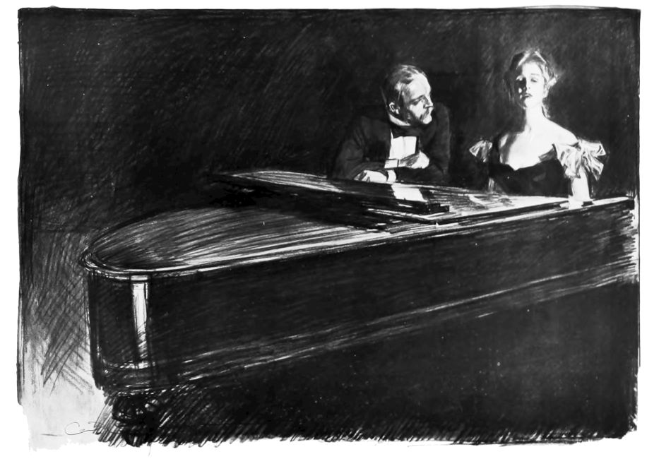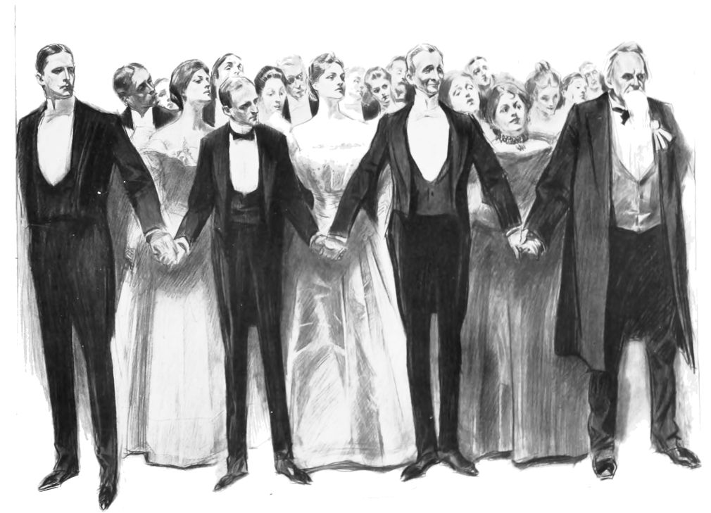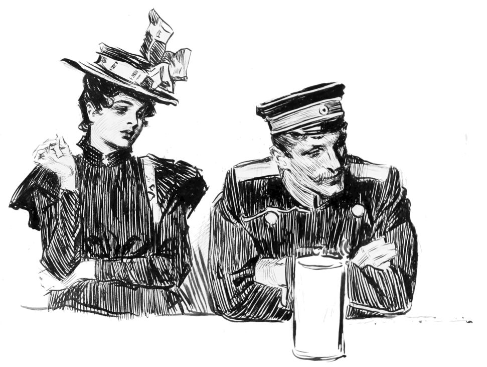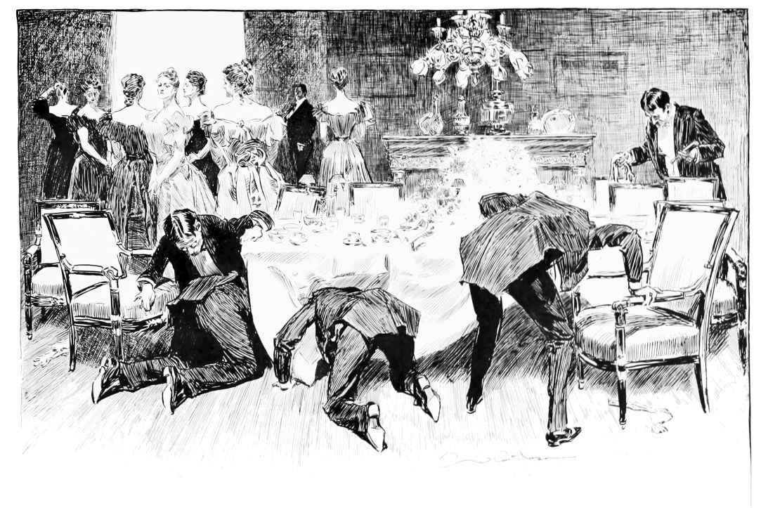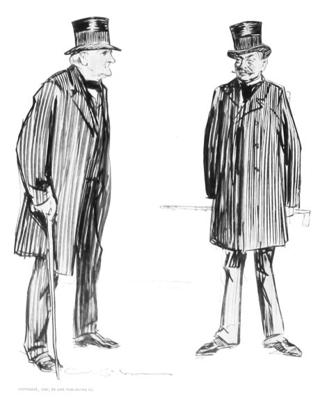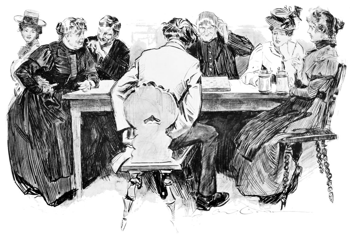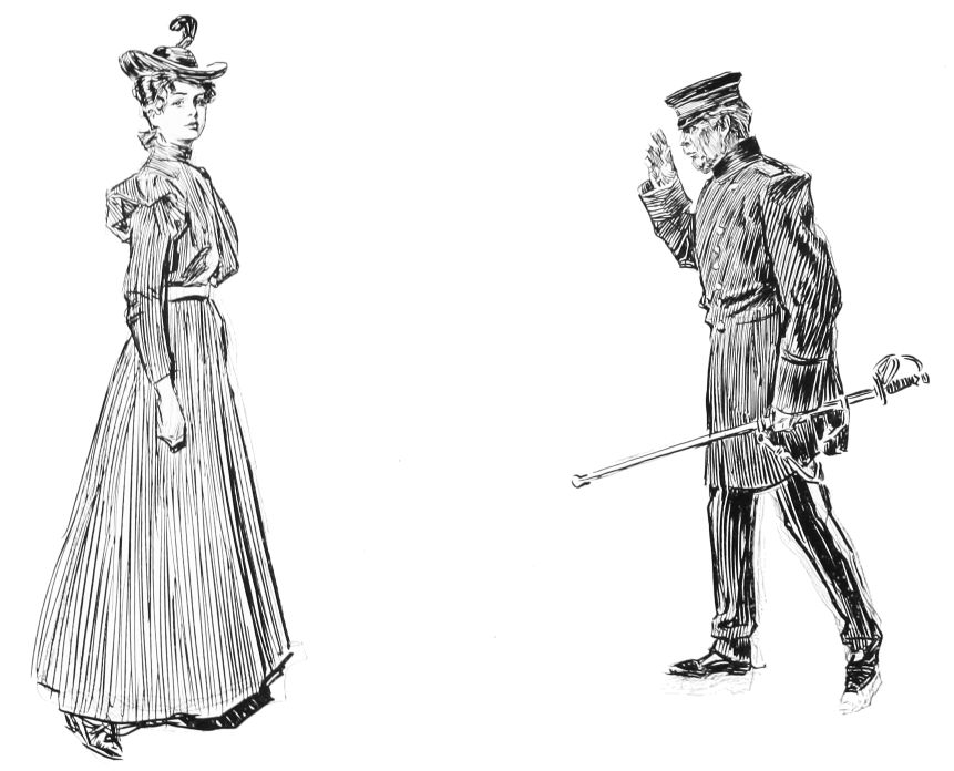 THIS is the third book in the regular series of Mr. Gibson’s published drawings, the first one being entitled “Drawings by C. D. Gibson,” the second, “Pictures of People.” Each book contains eighty-four of Mr. Gibson’s best cartoons, and all are uniform in size, shape and binding. Thanks are due to Messrs. Mitchell & Miller, Charles Scribner’s Sons, The S. S. McClure Co. and Harper & Bros., for their kind permission to reproduce a number of the drawings included in this collection.