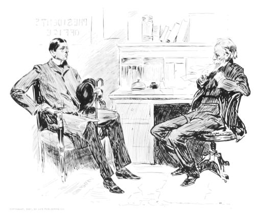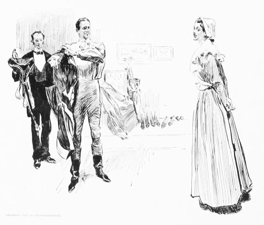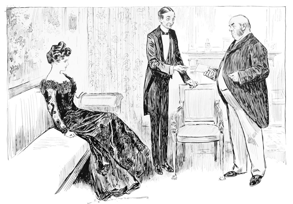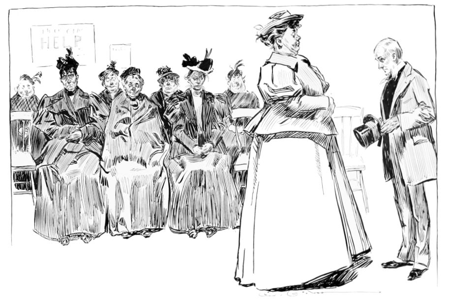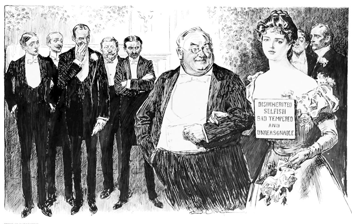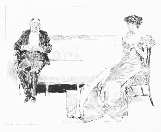 “Then put the baron through the usual course of questions, and, if satisfactory, put him on Maud’s eligible list. (To suitor) as soon as we can arrange the desirability of the various applicants we will let you know the result. Good-day, sir.”