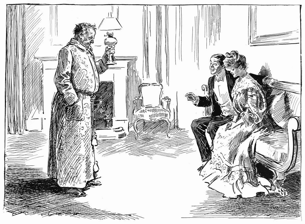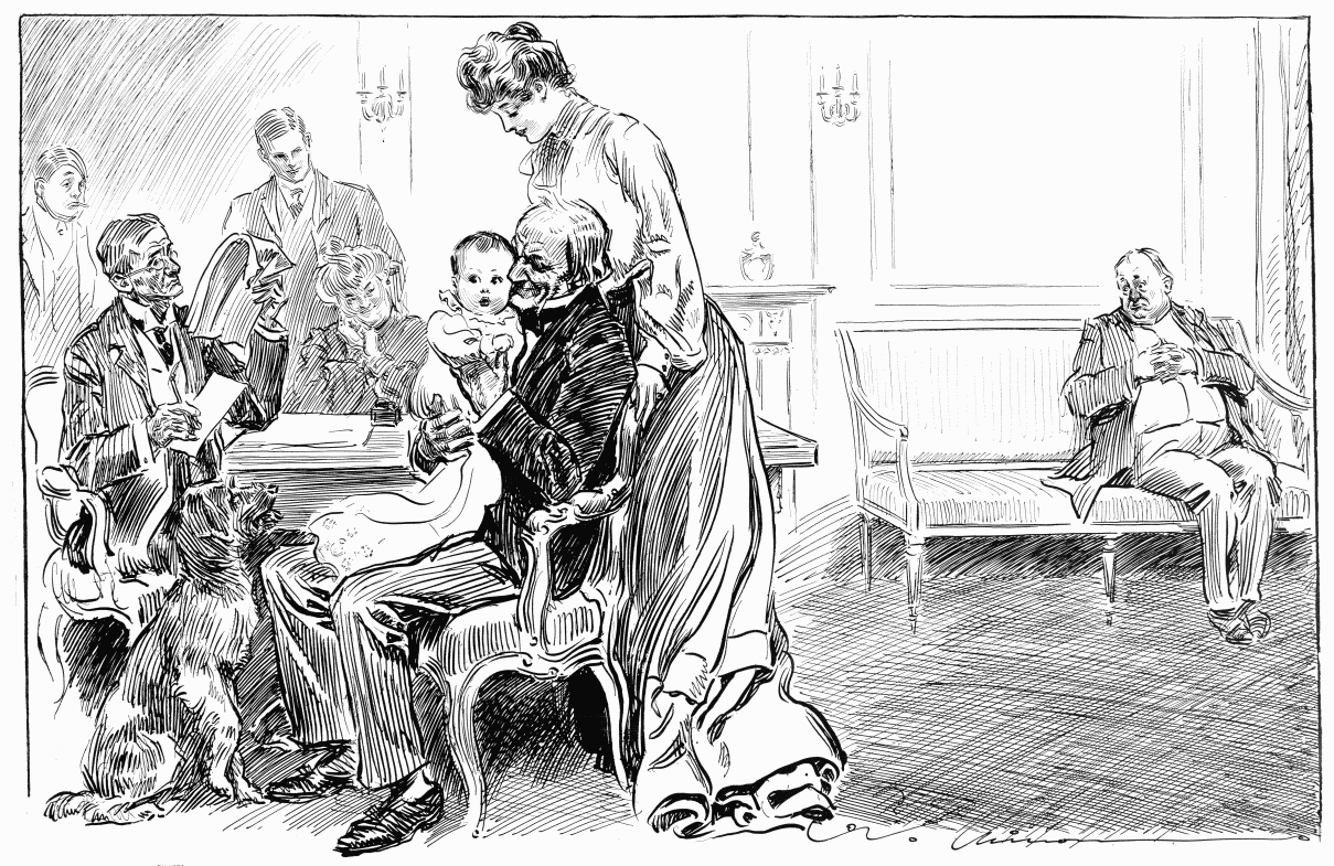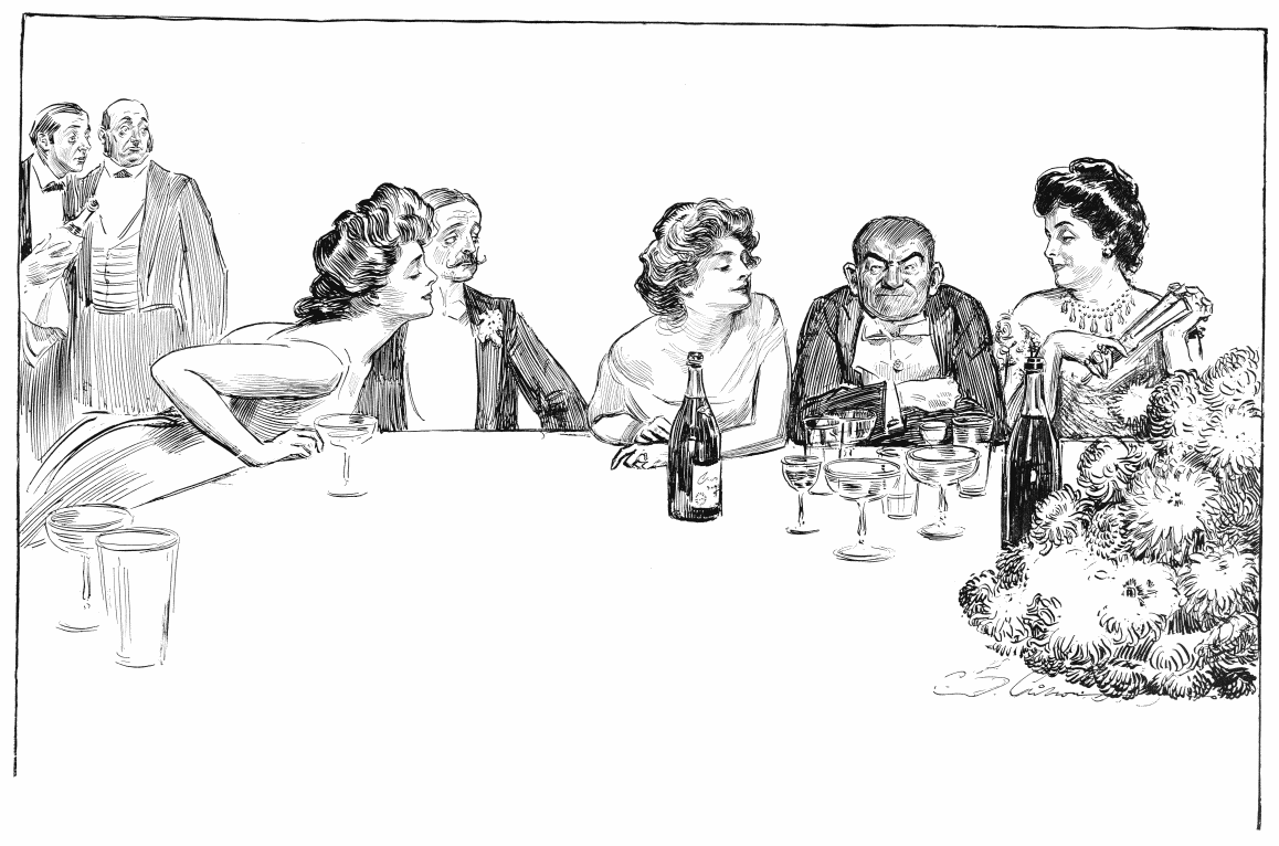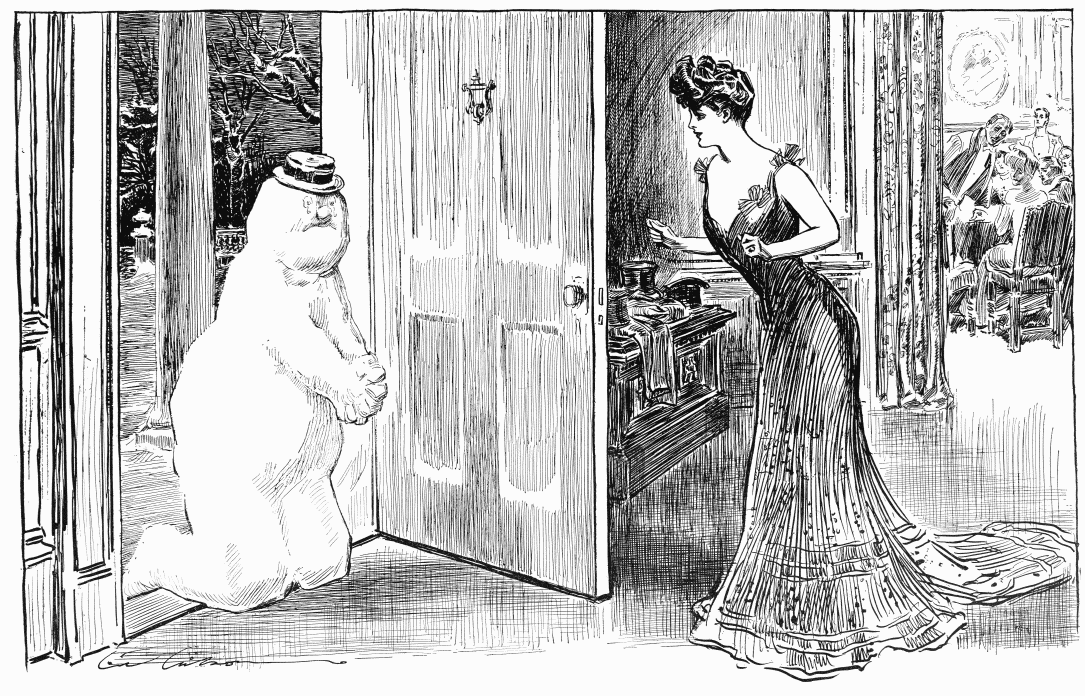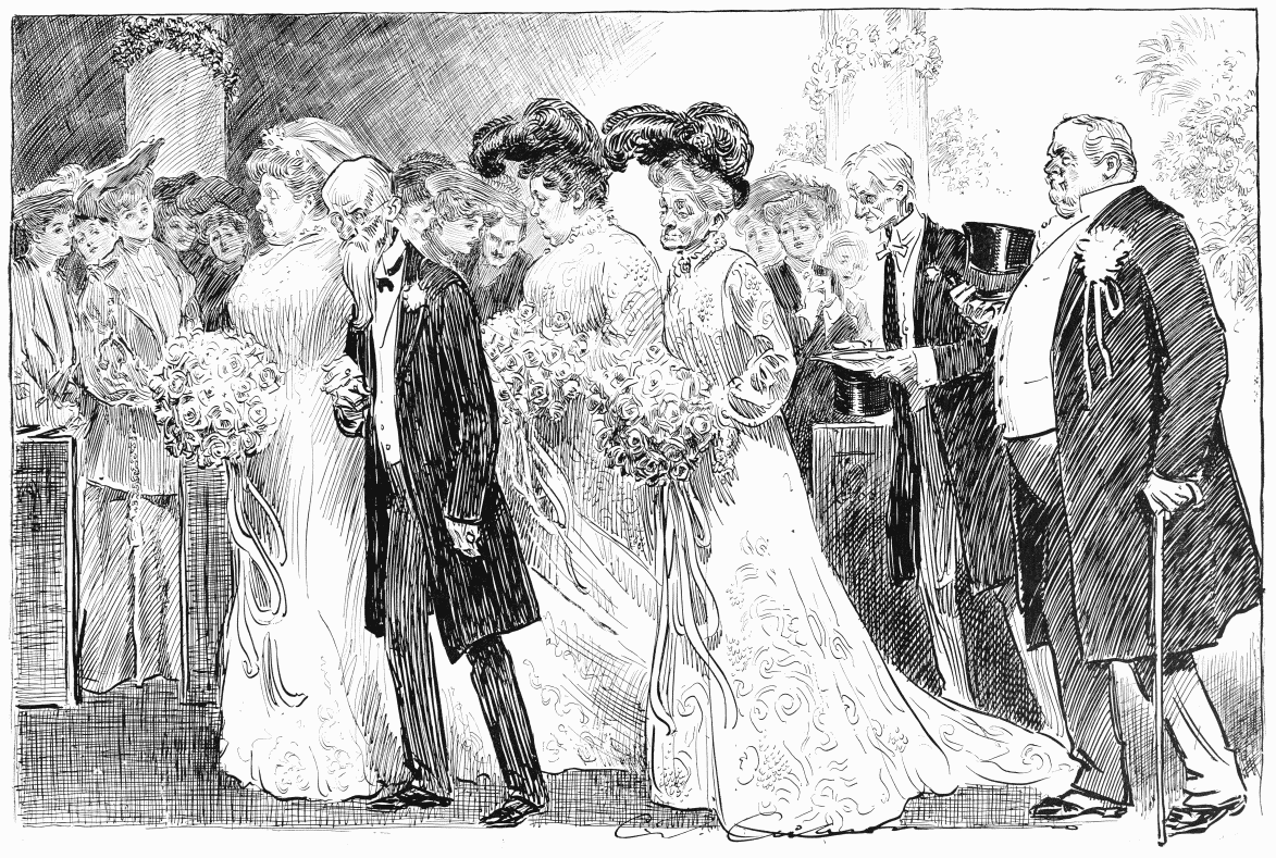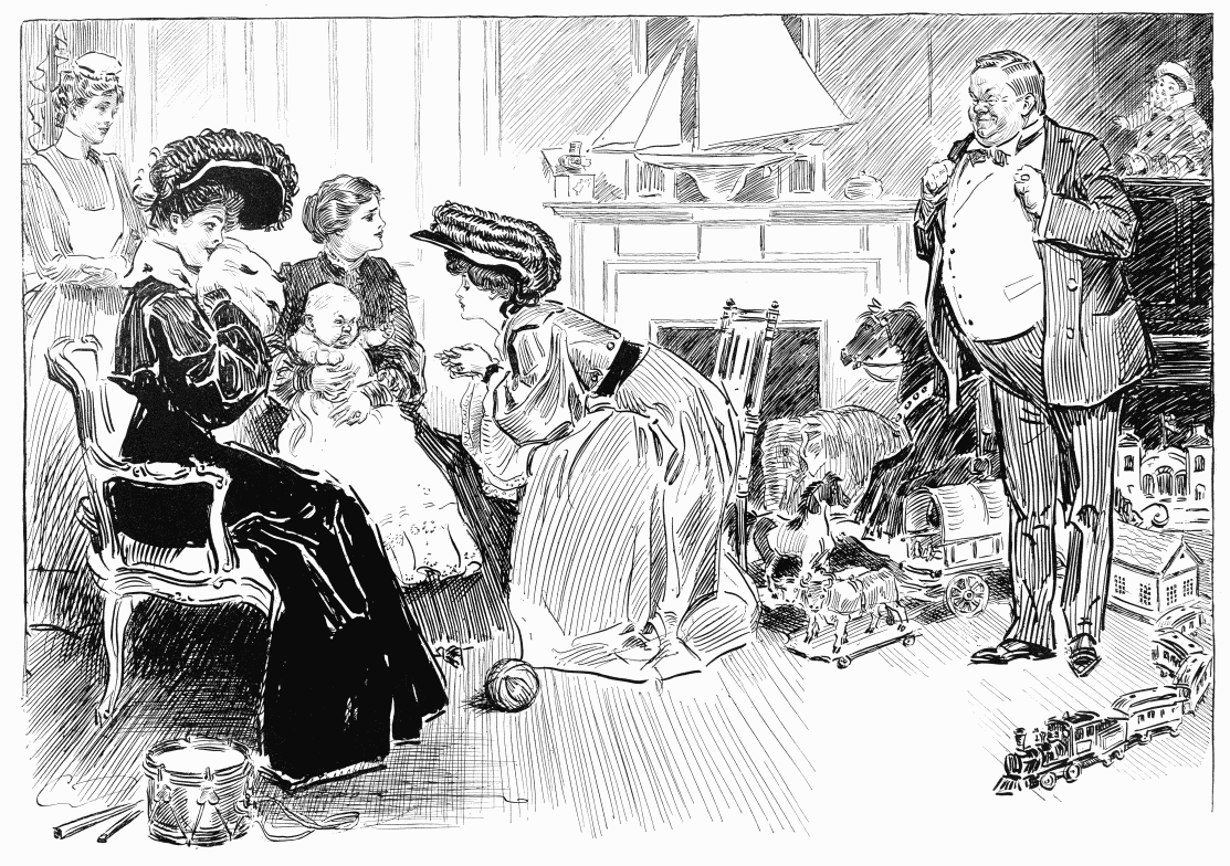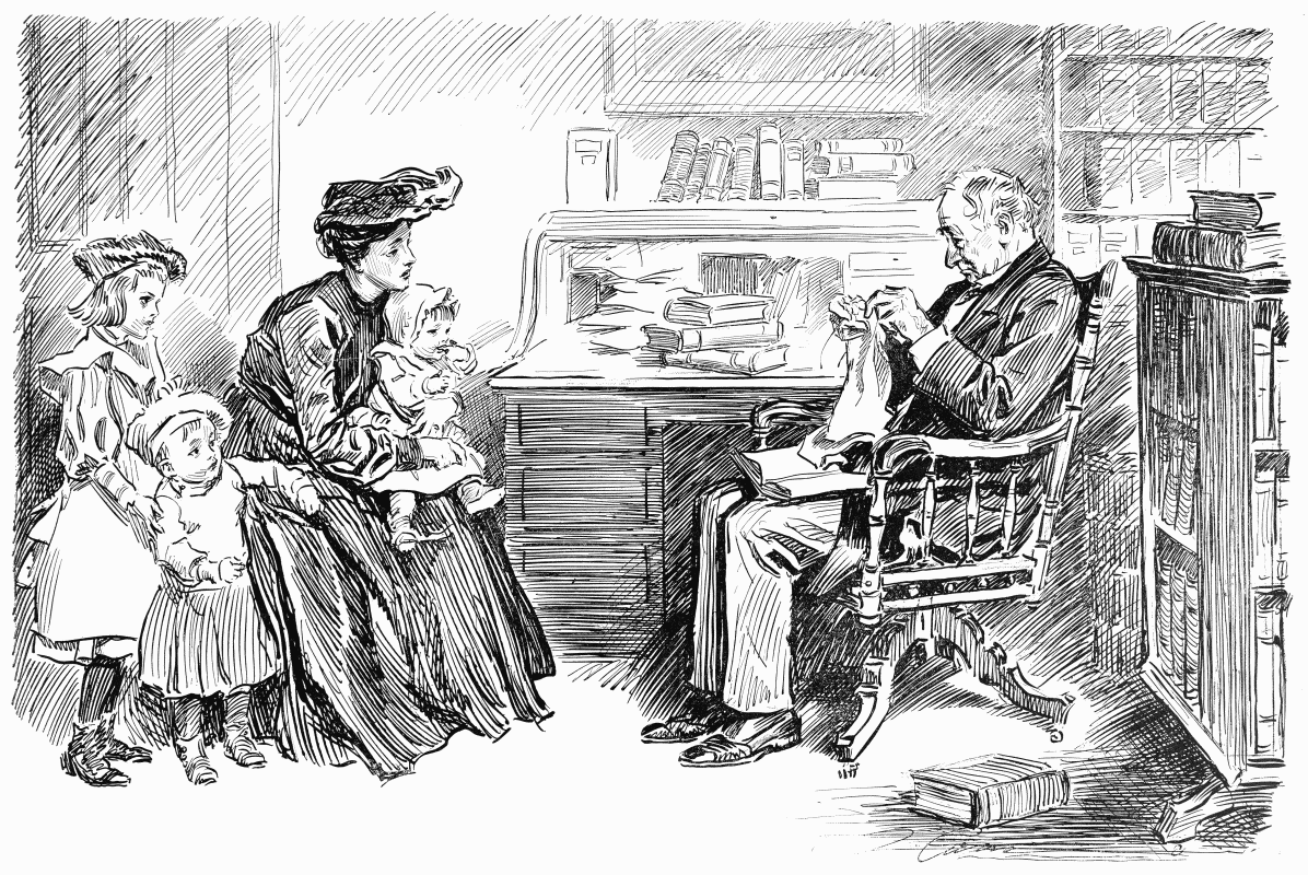 Mr. Meeker, having been kept up late for the last twenty years and rebuked for his lack of interest, develops a sudden enthusiasm. Mrs. Meeker and the girls now do the waiting.