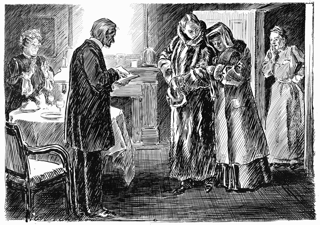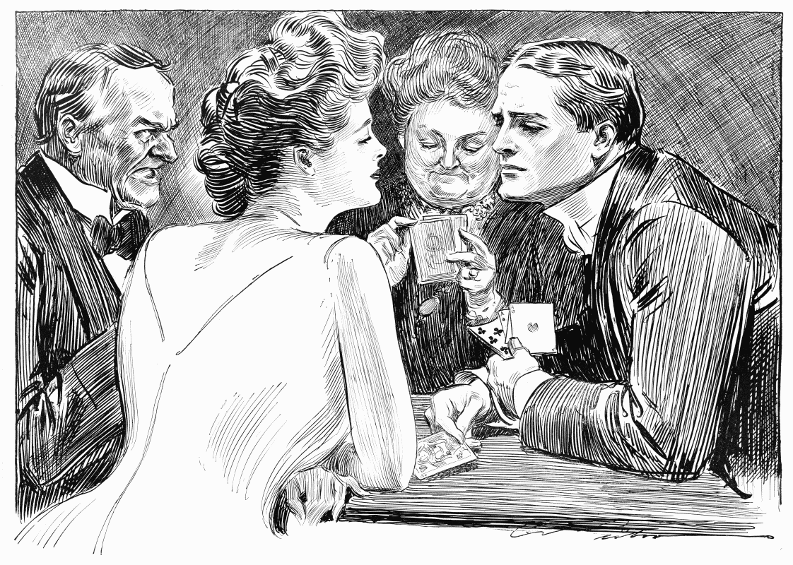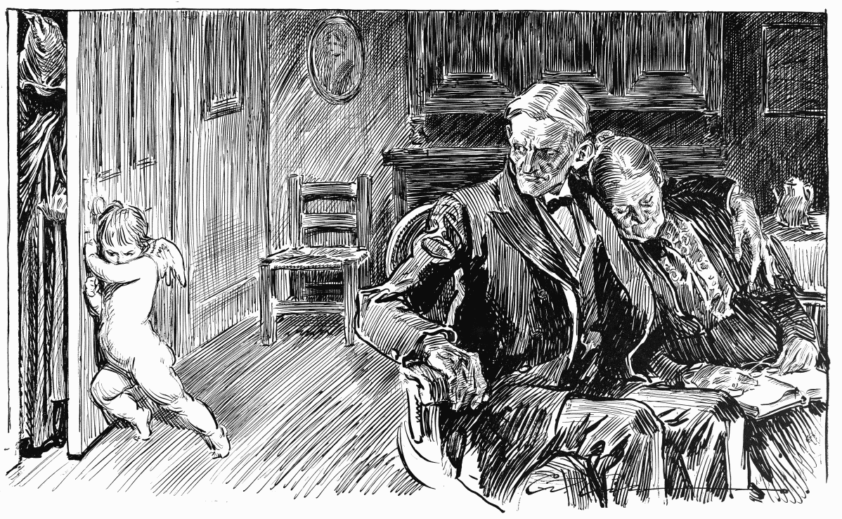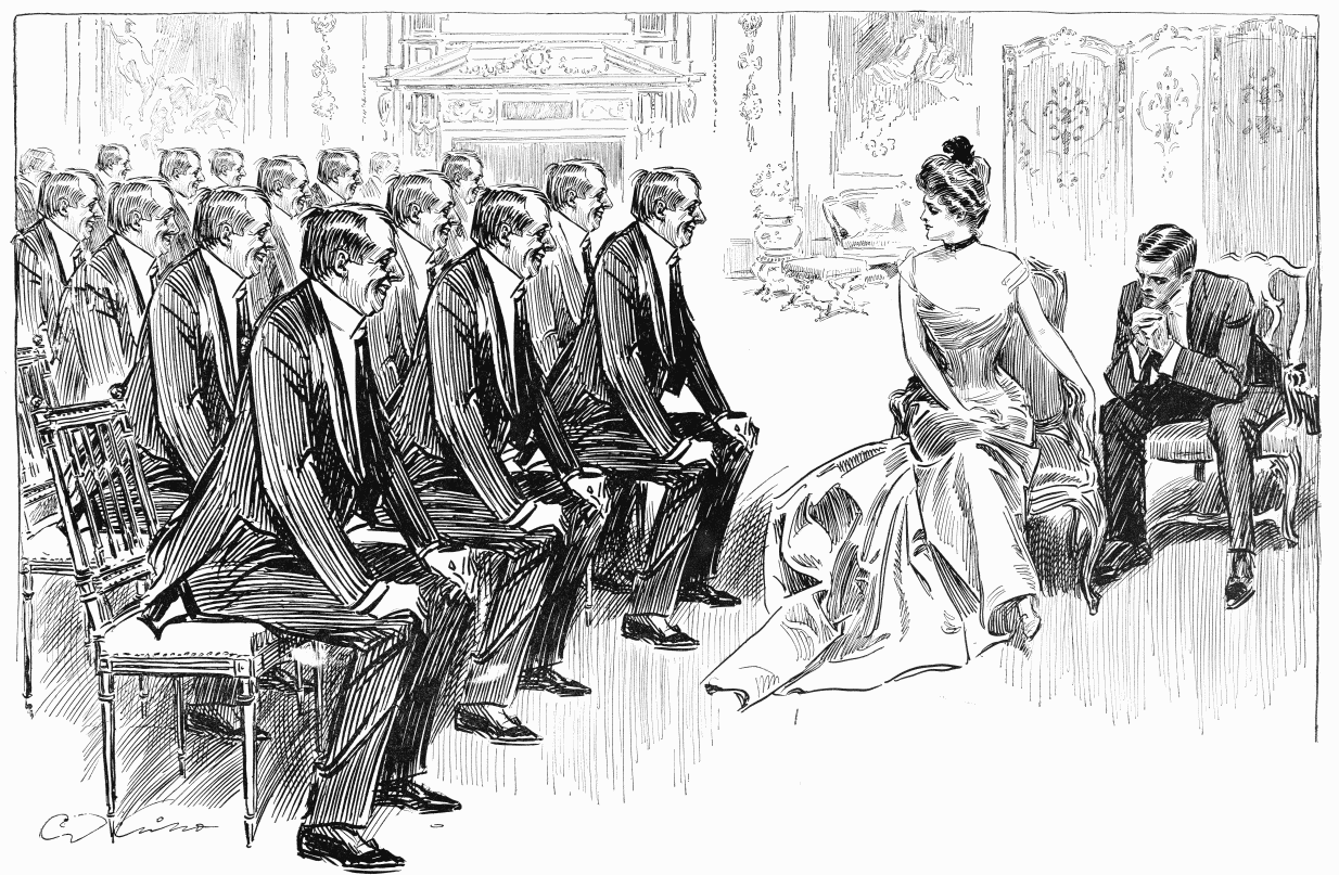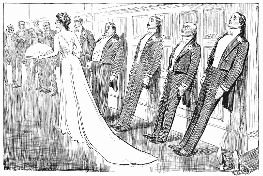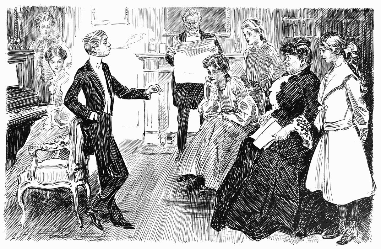 Mr. Meeker, having been kept up late for the last twenty years and rebuked for his lack of interest, develops a sudden enthusiasm. Mrs. Meeker and the girls now do the waiting.
