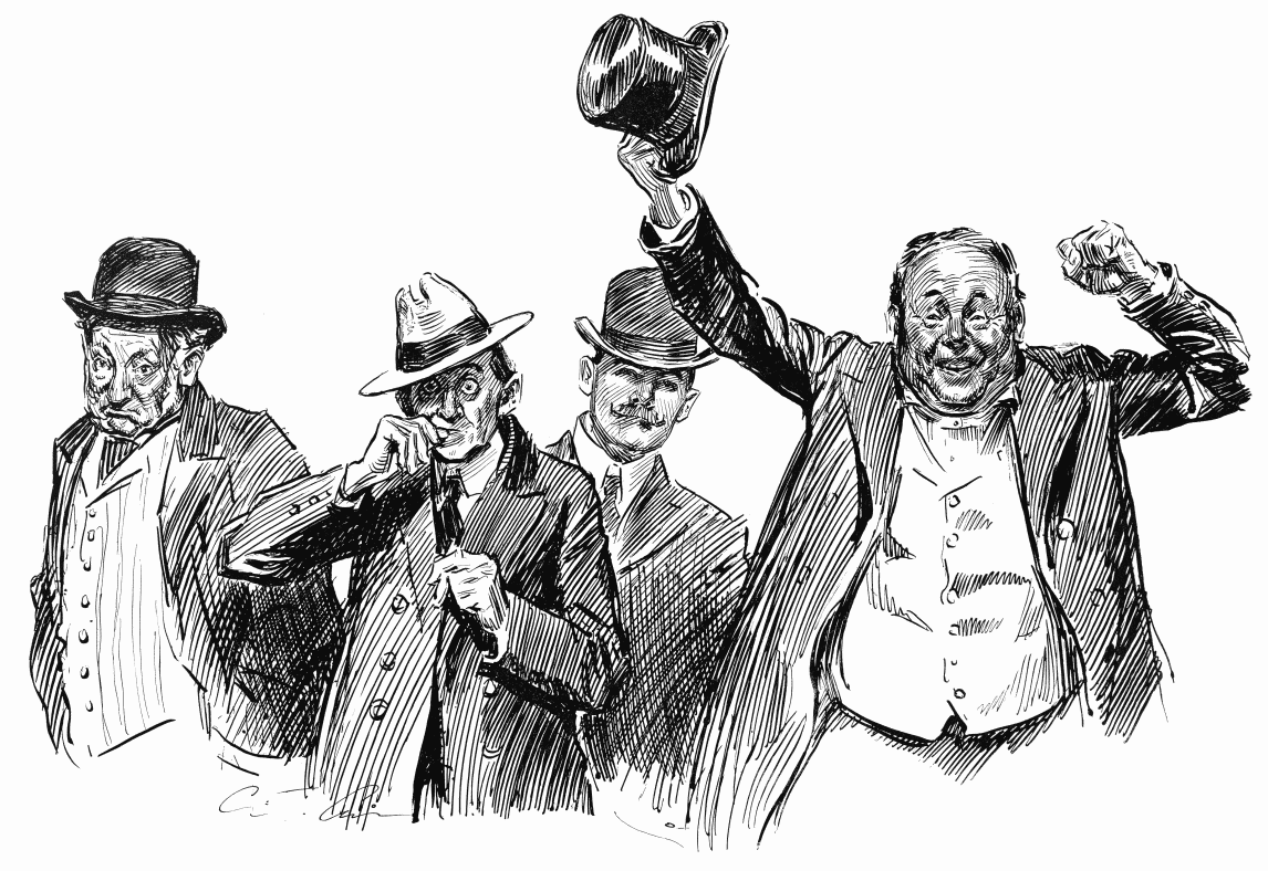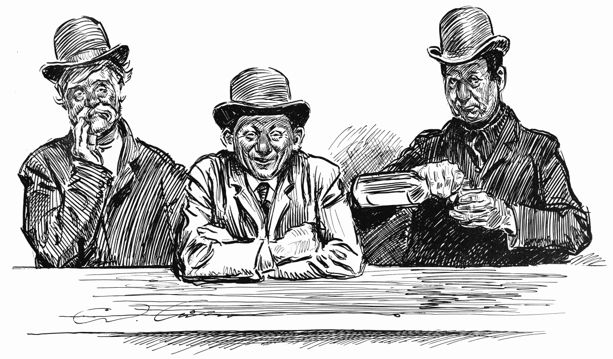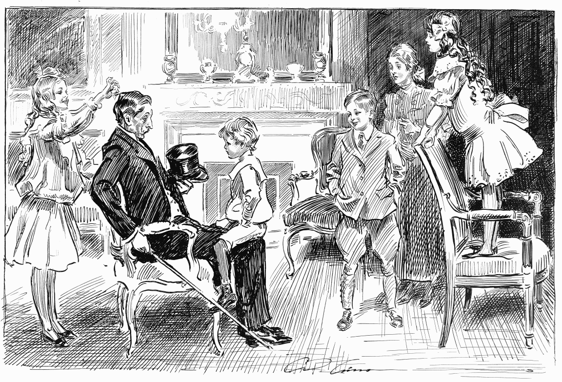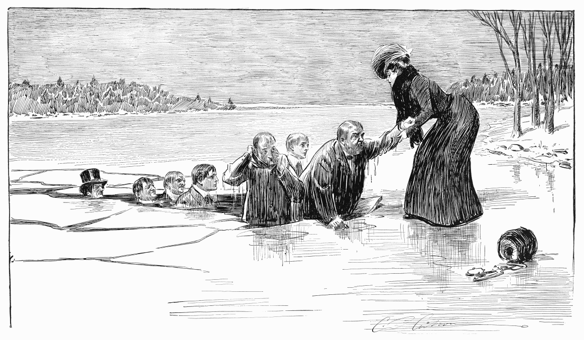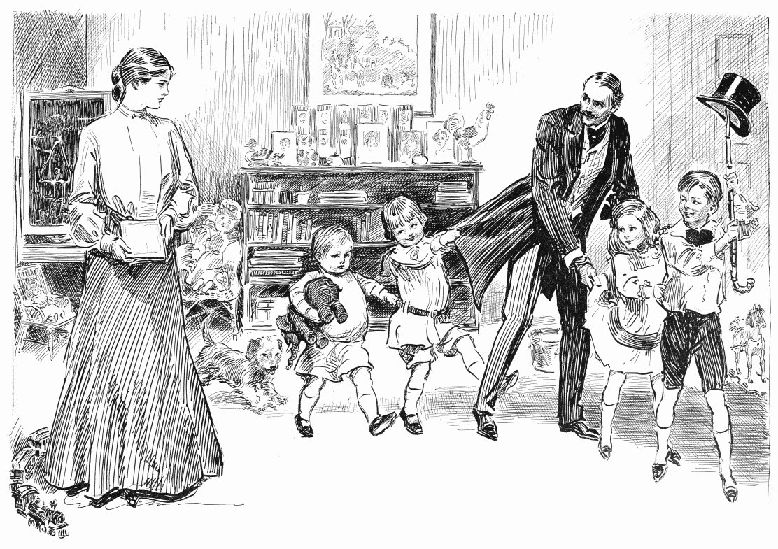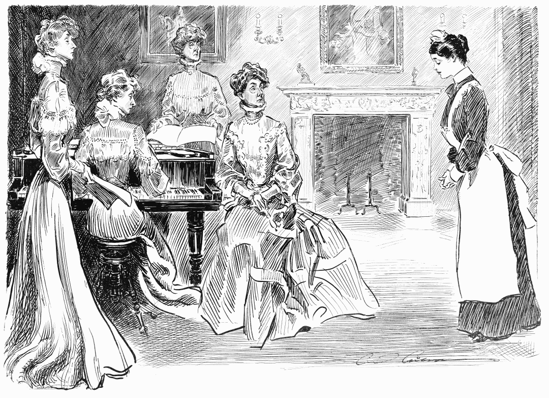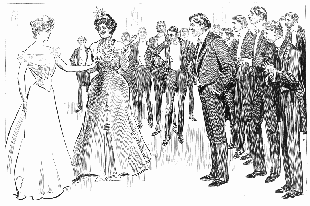 Mr. Meeker, having been kept up late for the last twenty years and rebuked for his lack of interest, develops a sudden enthusiasm. Mrs. Meeker and the girls now do the waiting.