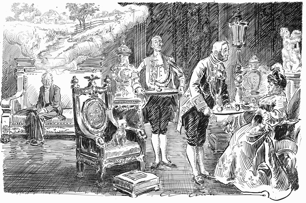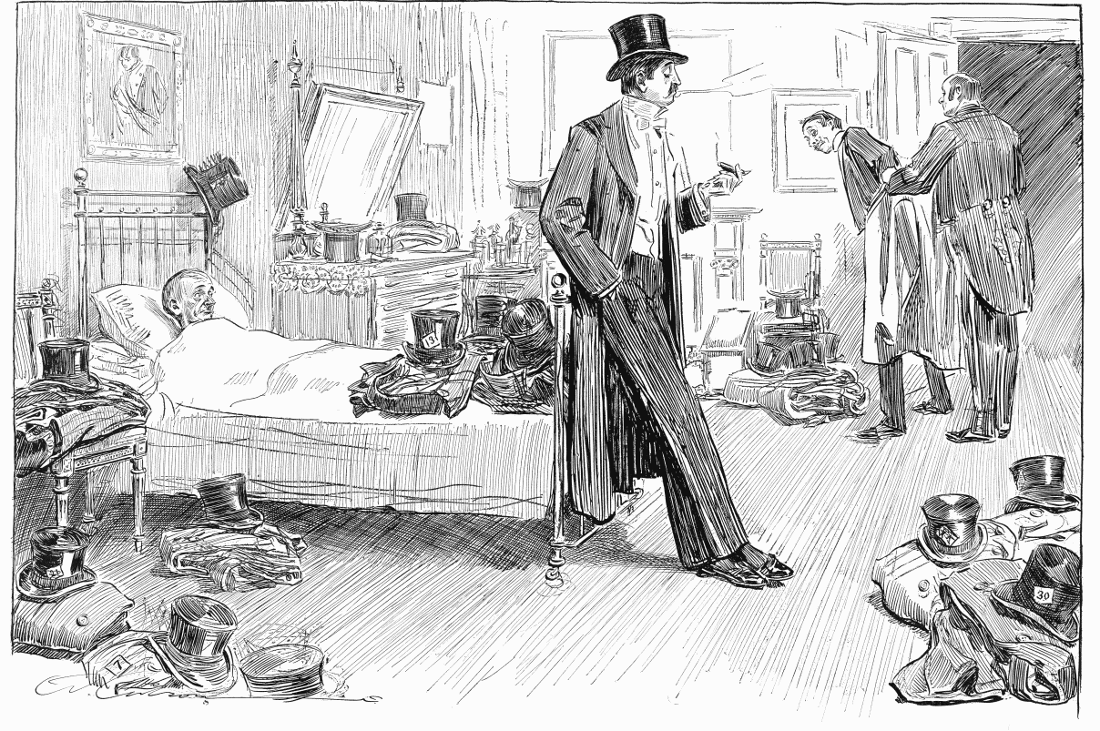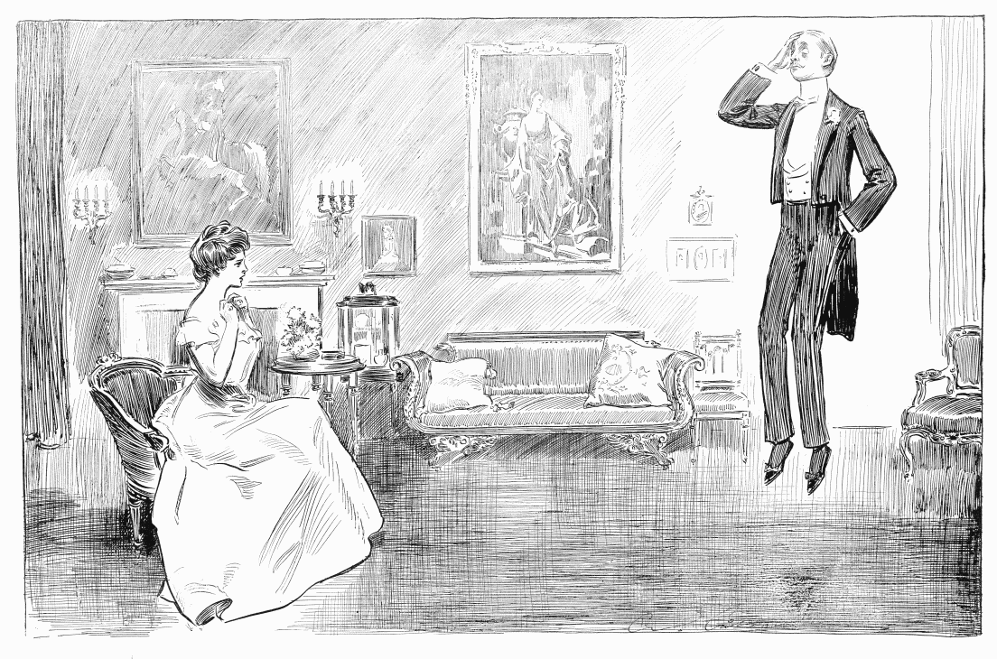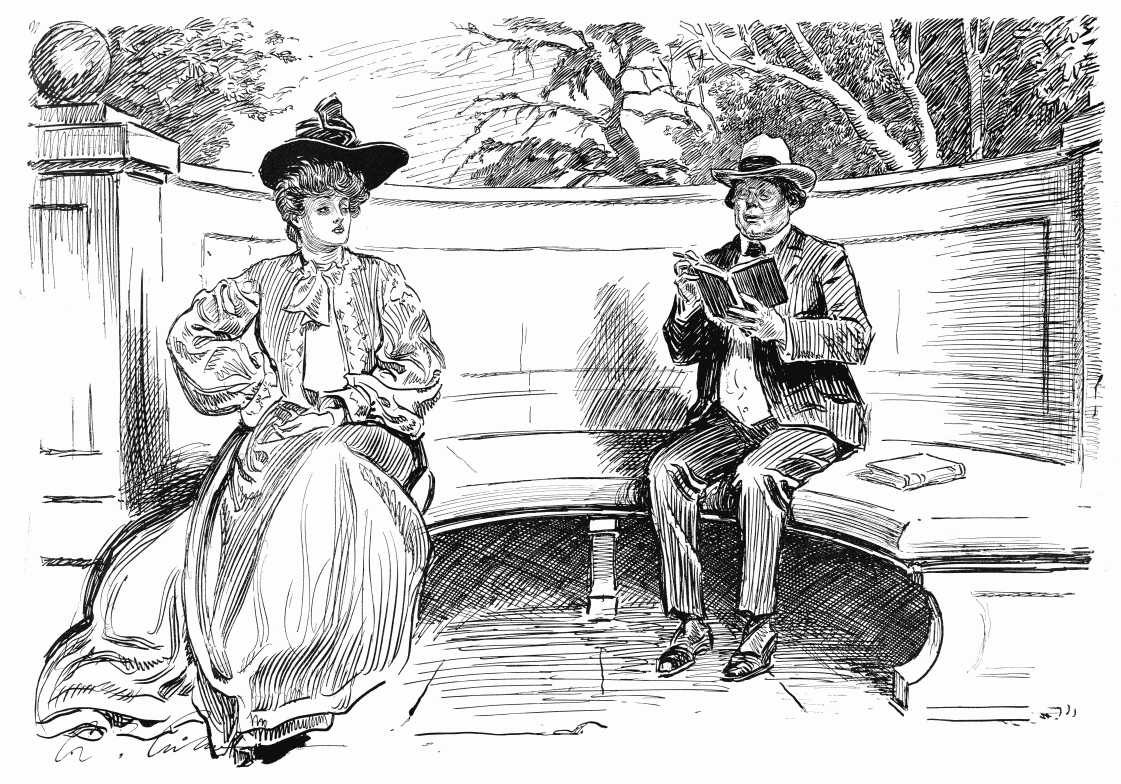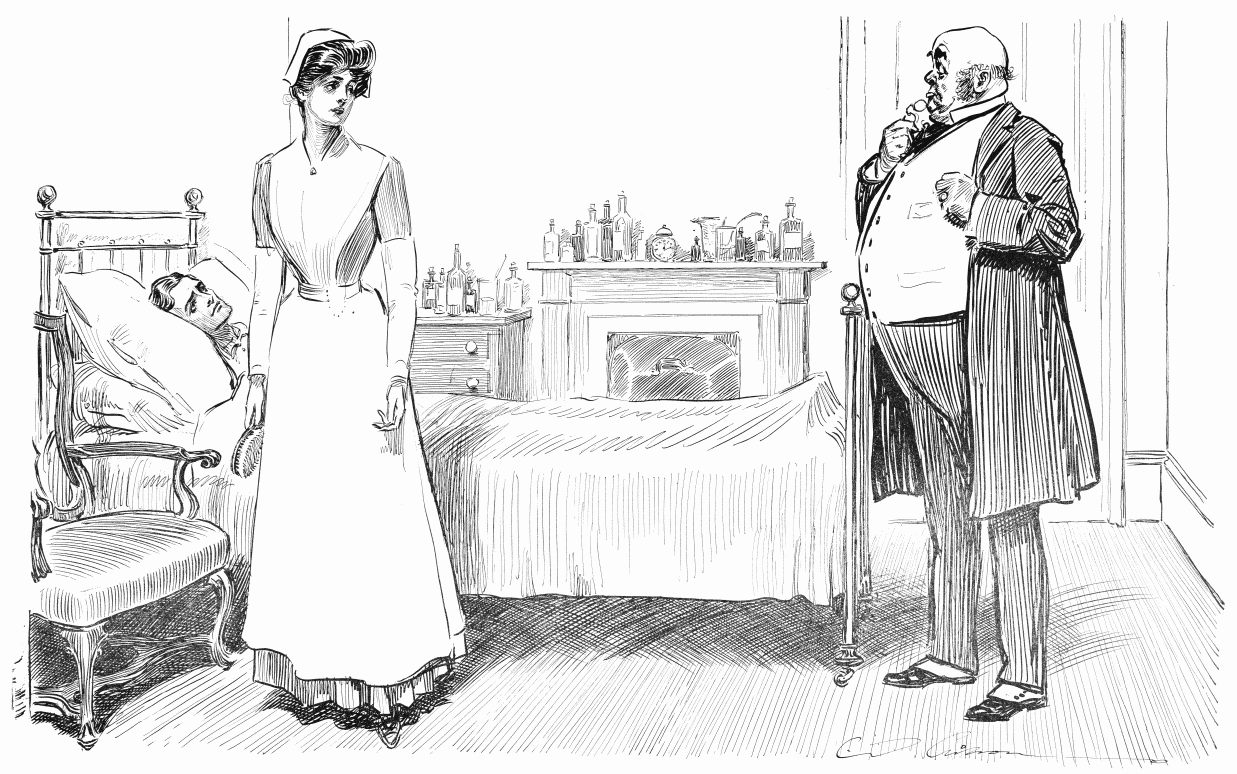 In pursuance of the advice of his physicians, our hero starts on his journey in search of rest, but at the very outset finds himself confronted by another distressing circumstance: his seat in the parlor car is next to Miss Peachem, for whom he has always had the most profound regard.