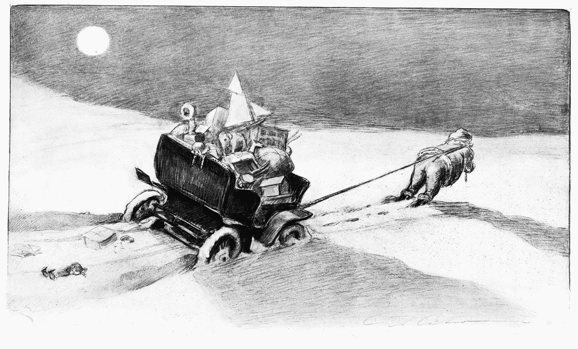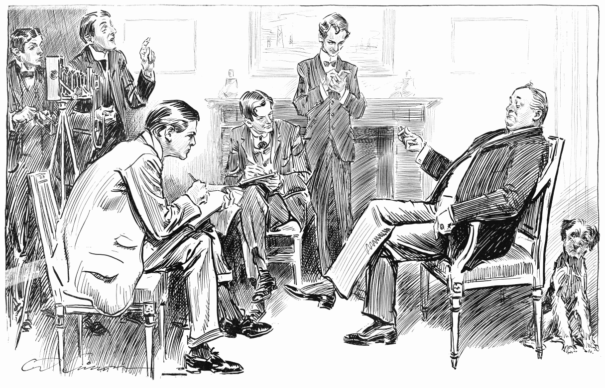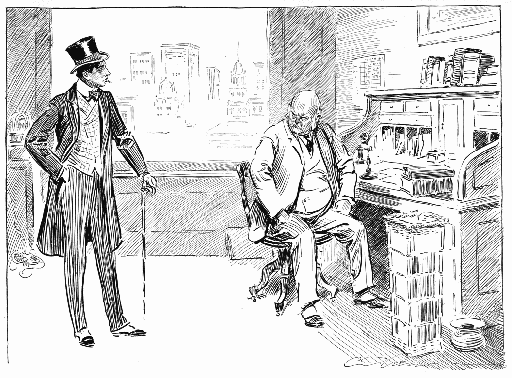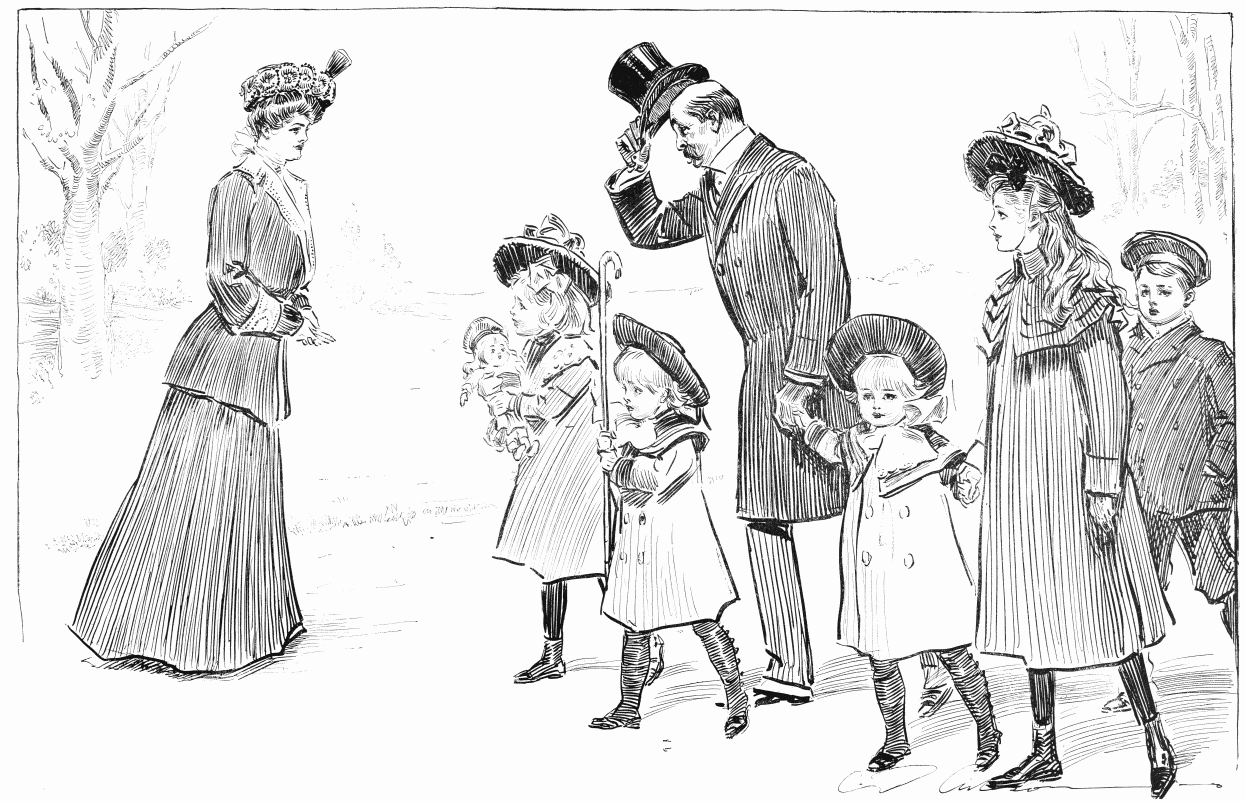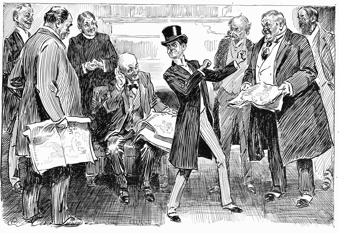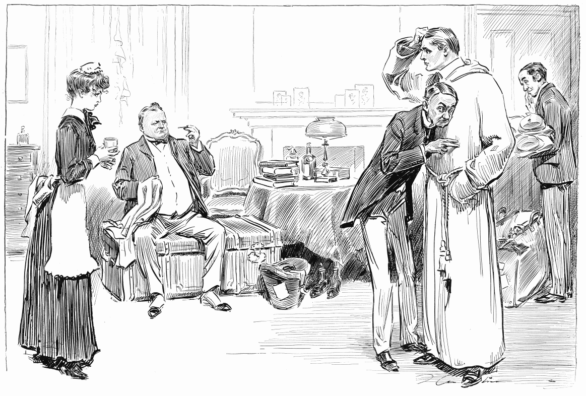 In pursuance of the advice of his physicians, our hero starts on his journey in search of rest, but at the very outset finds himself confronted by another distressing circumstance: his seat in the parlor car is next to Miss Peachem, for whom he has always had the most profound regard.