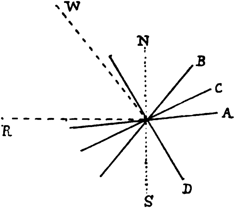Mallet's Method of Determining the Position of the Epicentre.—In many cases the examination of a damaged building or of an overthrown body served more than one purpose, providing materials for ascertaining the depth of the seismic focus as well as the position of the epicentre. For the present, however, it will be convenient to consider alone the method by which the latter object was to be attained.