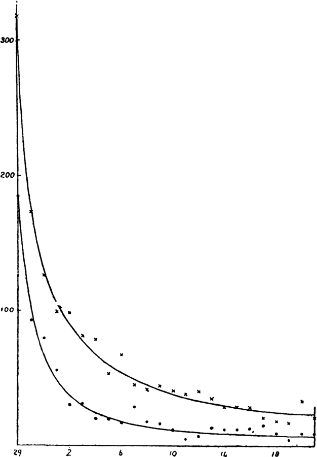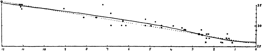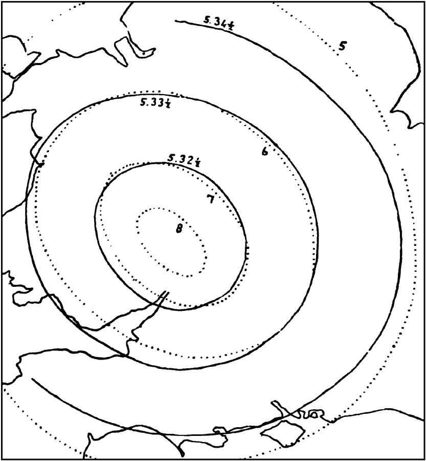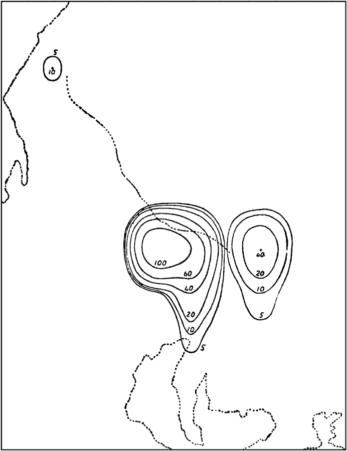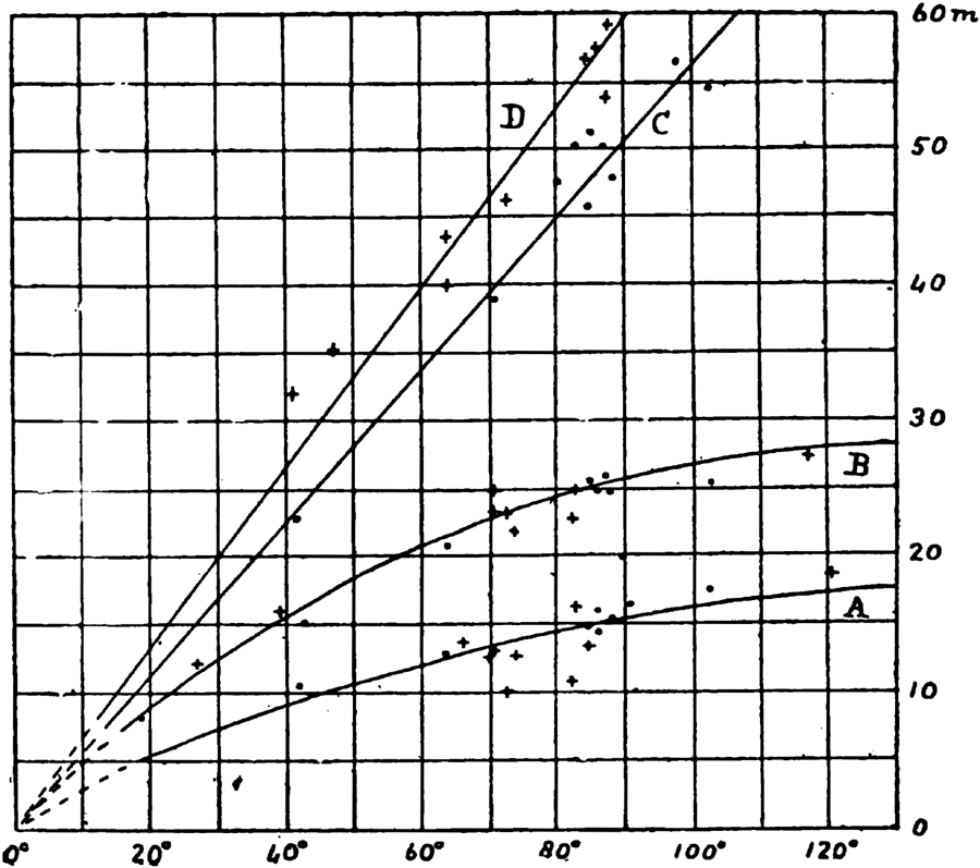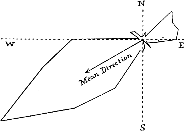 It thus appears that an isolated observation may give a result very different from the true direction. Indeed, if we may judge from Professor Omori's measurements in 1894, the chance that a single direction may be within five degrees of the mean direction is about 1 in 9. But, on the other hand, it is equally clear from these and other observations that the mean of a large number of measurements will give a result that agrees very closely with the true direction.