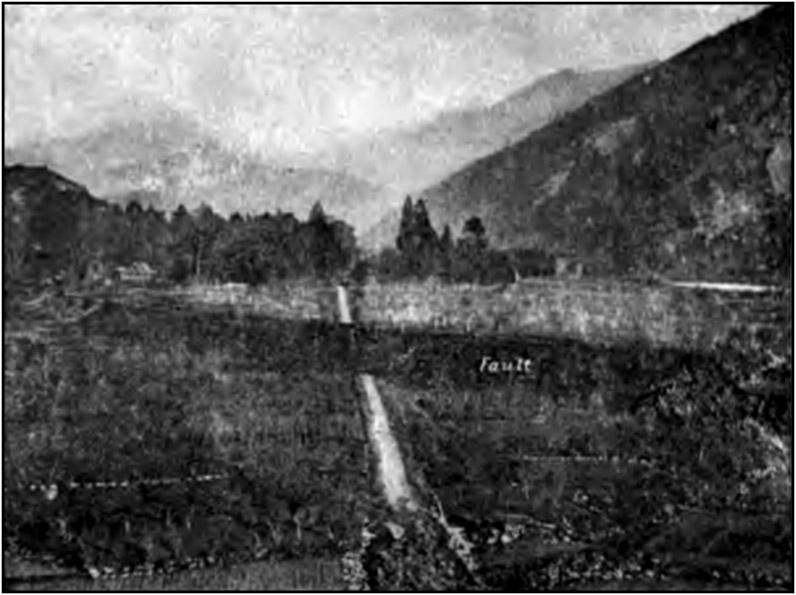 In most earthquakes, the slip takes place at a considerable depth, perhaps not less than one or several miles, and the vertical slip is so small that it dies out before reaching the surface. But, in a few violent earthquakes, such as the Japanese and Indian earthquakes described in this volume, the slip is continued up to the surface and is left visible there as a small cliff or fault-scarp. In these cases, the sudden spring of the crust may increase and complicate the effects of the vibratory shock.