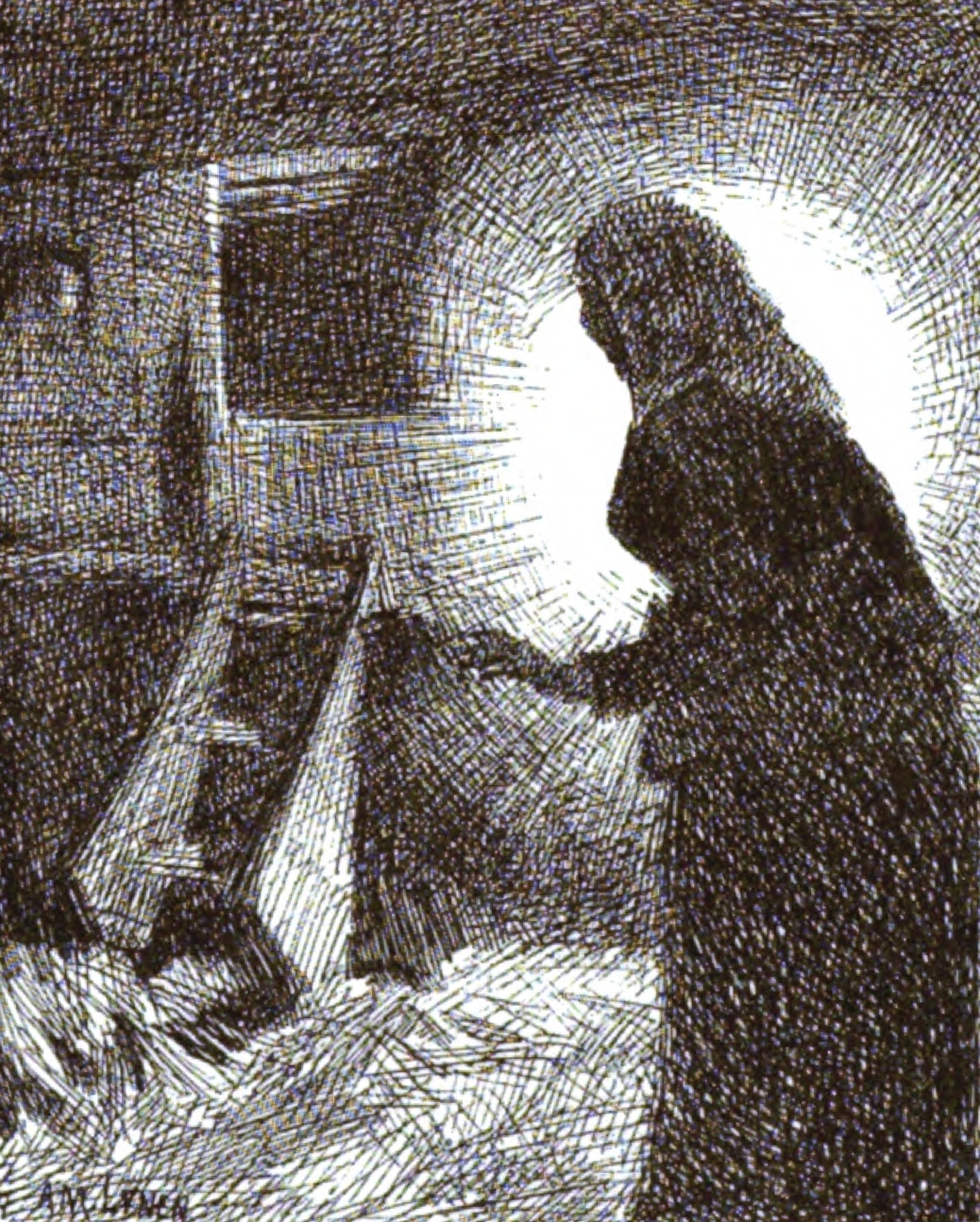 ‘It is so hot I really can’t sleep,’ said she, and went on tip-toe to the stable, as quiet as pussy, for fear of waking Johnny.