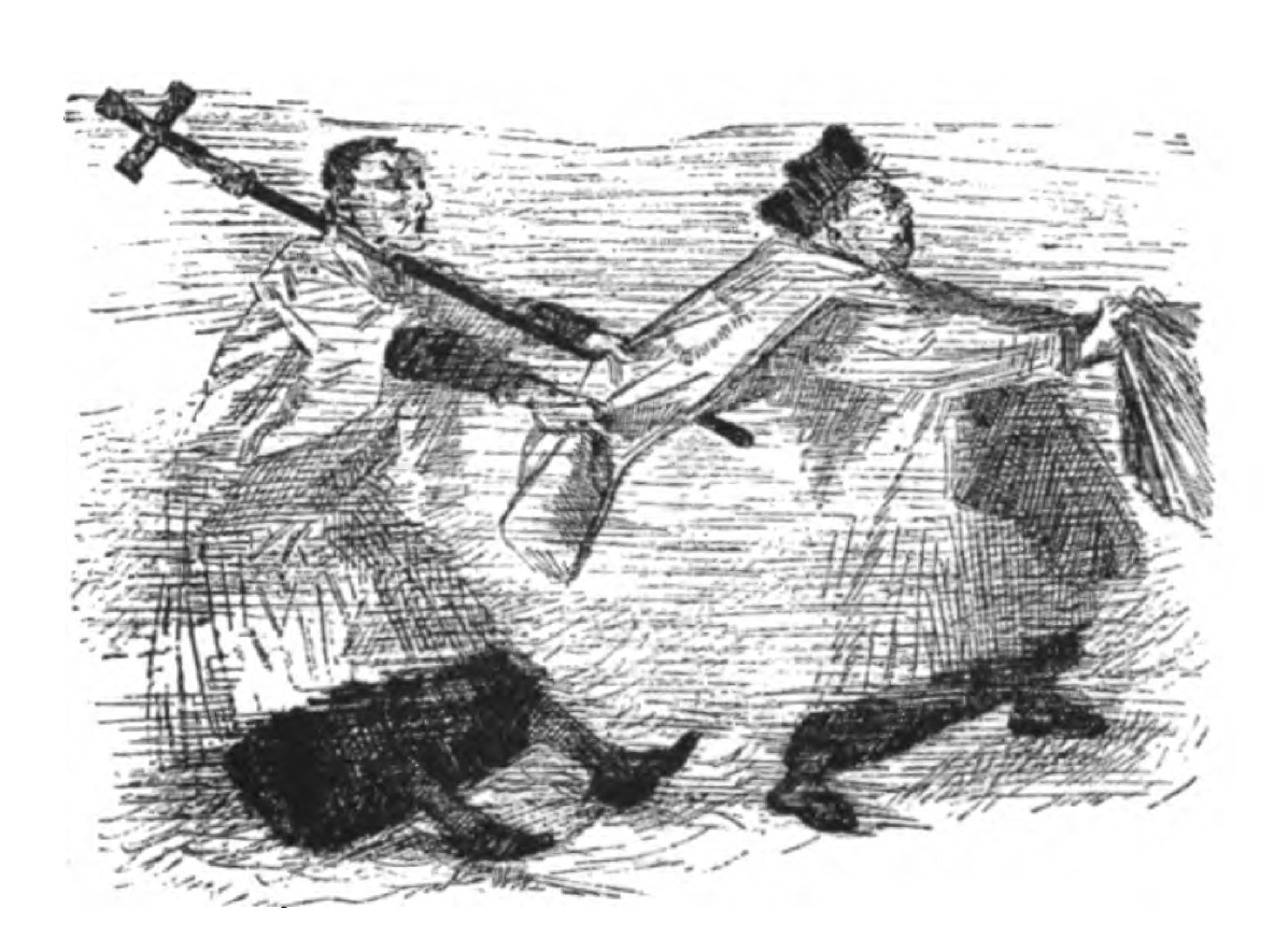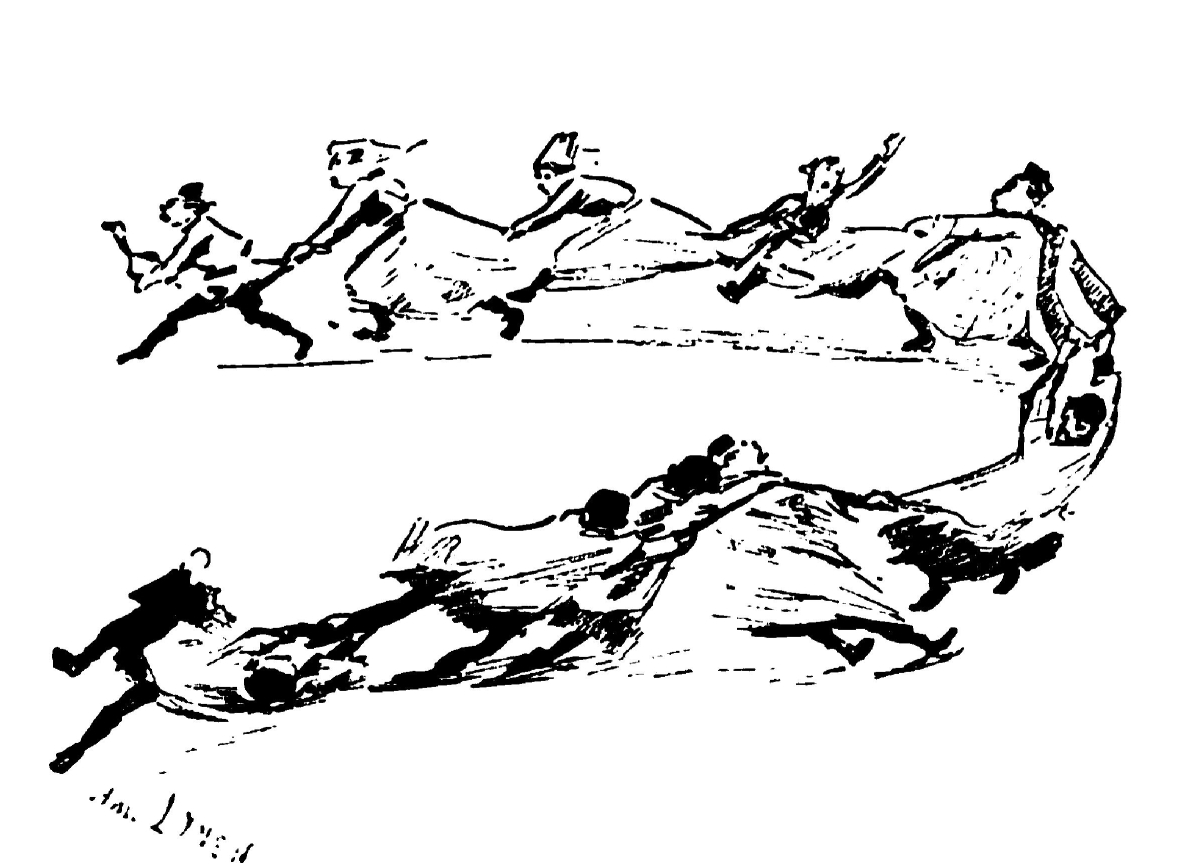 ‘Oh, sir, oh, sir!’ cried the Beadle (who was a long, thin-legged man, like a heron), and he ran up, caught hold of the Vicar by his gown, and there he stuck.