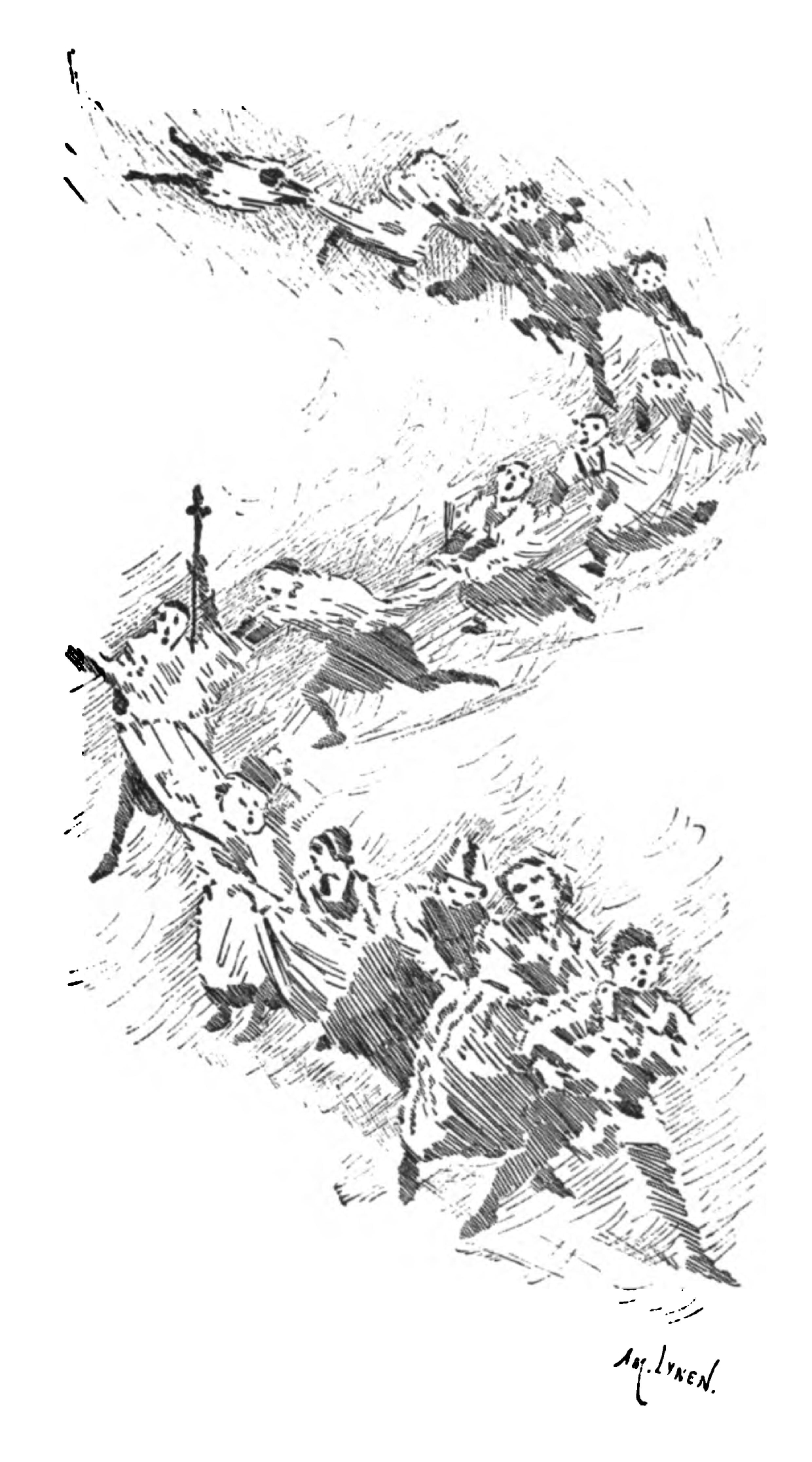 The Vicar cried for help to the rest of his company, so first the Curates, then the Organist, then the man with the violin, then the cornet-player, and, lastly, all the wicked little choir-boys, rushed to hold the Vicar back, but they were all caught, and had all to run after Johnny, while Johnny just followed his goose!