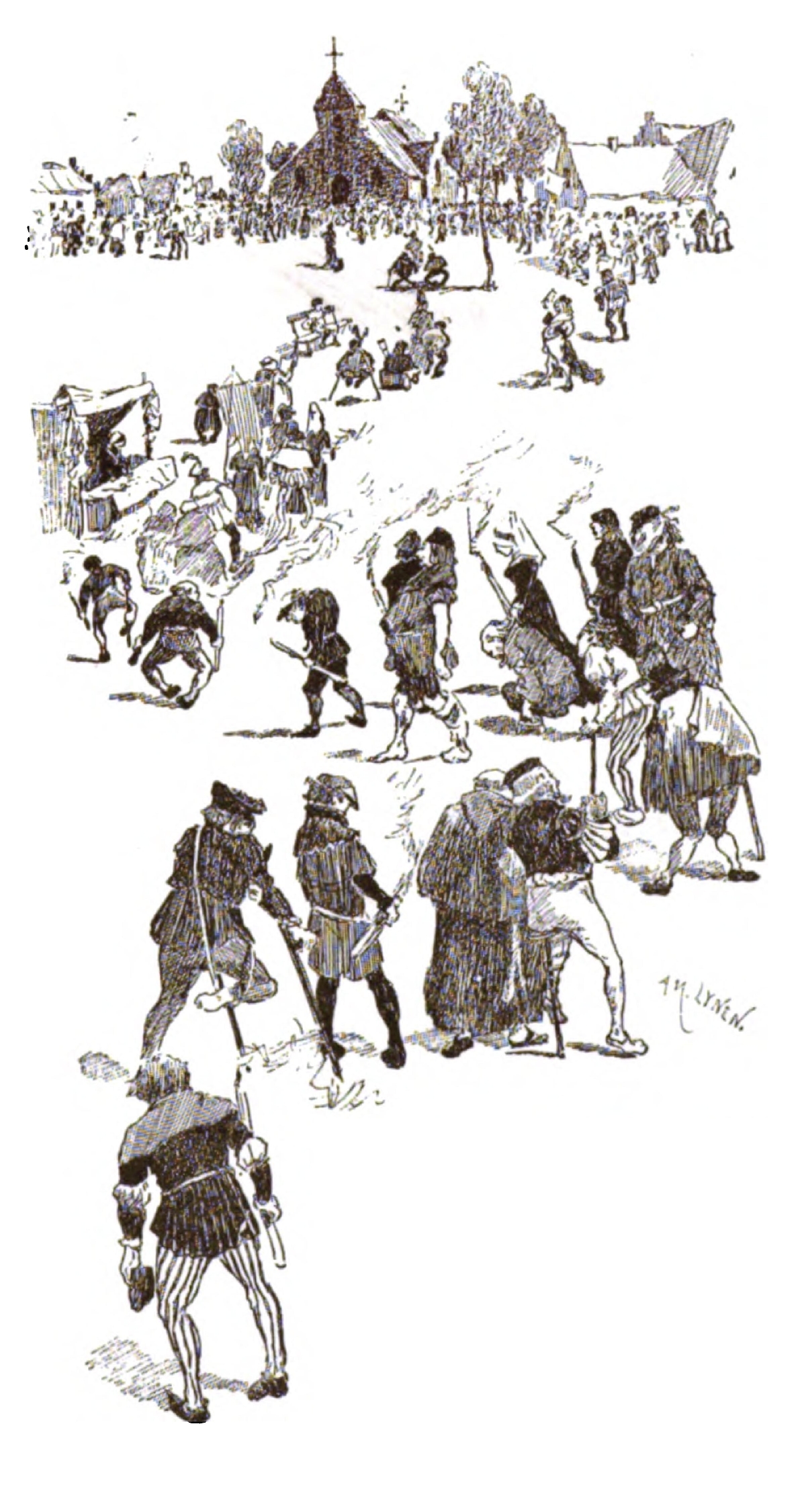 ‘When I do get to Hergnies,’ said he to himself, ‘I’ll marry the maid, and we’ll have roast goose at the wedding supper,’ for his intentions were strictly honourable.