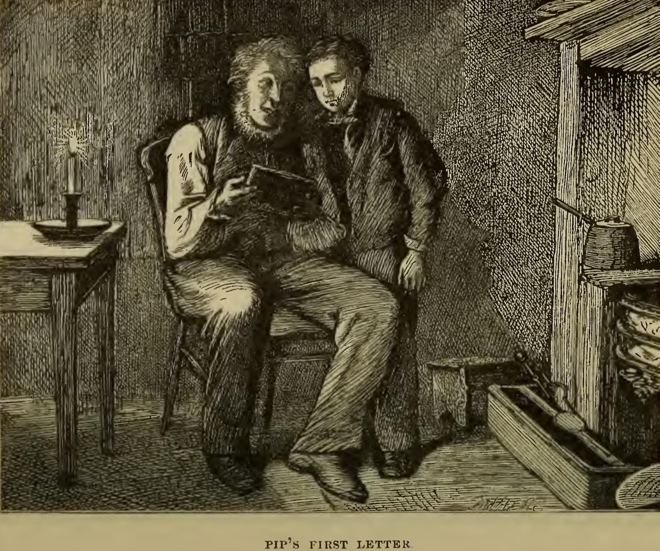 “Now let me go up and look at my old little room, and rest there a few minutes by myself. And then, when I have eaten and drunk with you, go with me as far as the finger-post, dear Joe and Biddy, before we say good-bye!”