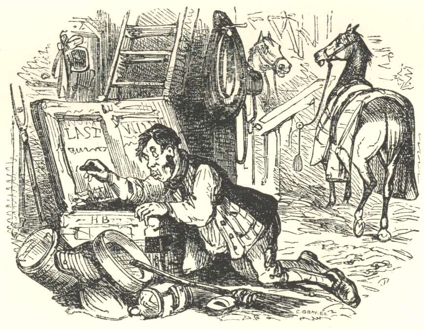 ‘And the sweet old creetur, sir,’ said the elder Mr. Weller to me in the afternoon, ‘has bolted. Him as had no wice, and was so free from temper that a infant might ha’ drove him, has been took at last with that ’ere unawoidable fit o’ staggers as we all must come to, and gone off his feed for ever! I see him,’ said the old gentleman, with a moisture in his eye, which could not be mistaken,—‘I see him gettin’, every journey, more and more groggy; I says to Samivel, “My boy! the Grey’s a-goin’ at the knees;” and now my predilictions is fatally werified, and him as I could never do enough to serve or show my likin’ for, is up the great uniwersal spout o’ natur’.’