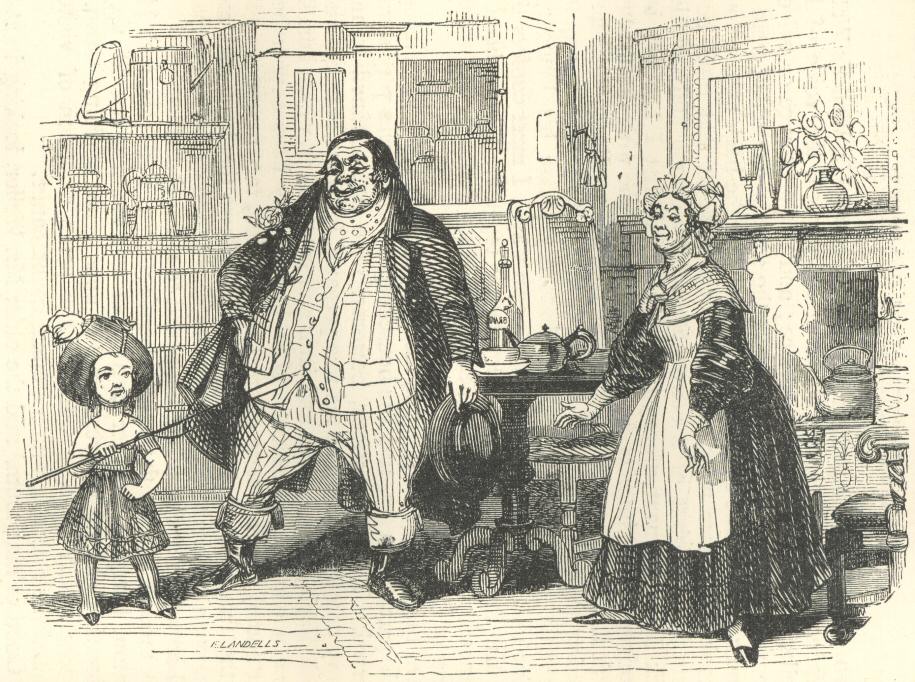 He was a very substantial citizen indeed. His face was like the full moon in a fog, with two little holes punched out for his eyes, a very ripe pear stuck on for his nose, and a wide gash to serve for a mouth. The girth of his waistcoat was hung up and lettered in his tailor’s shop as an extraordinary curiosity. He breathed like a heavy snorer, and his voice in speaking came thickly forth, as if it were oppressed and stifled by feather-beds. He trod the ground like an elephant, and eat and drank like—like nothing but an alderman, as he was.