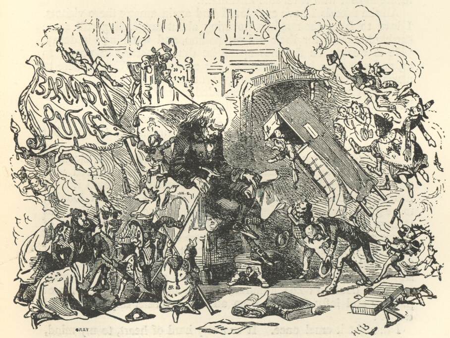 [306] Old Curiosity Shop is continued from here to the end without further break. Master Humphrey is revived thus at the close of the Old Curiosity Shop, merely to introduce Barnaby Rudge.