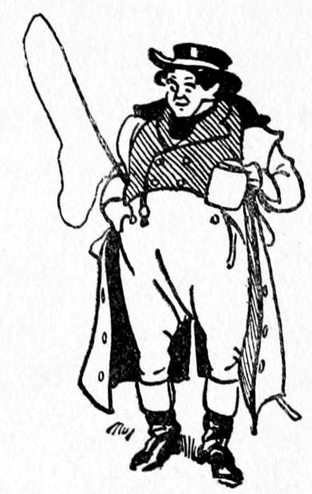 But we are so taken up, and occupied, with the good qualities of Christmas, who, by the way, is quite a country gentleman of the old 28school, that we are keeping Mr. Pickwick and his friends waiting in the cold, on the outside of the Muggleton coach, which they have just attained, well wrapped up, in great-coats, shawls, and comforters. The portmanteaus and carpet-bags have been stowed away, and Mr. Weller and the guard are endeavouring to insinuate into the fore-boot a huge cod-fish several sizes too large for it, which is snugly packed up, in a long brown basket, with a layer of straw over the top, and which has been left to the last, in order that he may repose in safety on the half-dozen barrels of real native oysters, all the property of Mr. Pickwick, which have been arranged in regular order, at the bottom of the receptacle. The interest displayed in Mr. Pickwick’s countenance is most intense, as Mr. Weller and the guard try to squeeze the cod-fish into the boot, first head first, and then tail first, and then top upwards, and then bottom upwards, and then sideways, and then longways, all of which artifices the implacable cod-fish 29sturdily resists, until the guard accidentally hits him in the very middle of the basket, whereupon he suddenly disappears into the boot, and with him, the head and shoulders of the guard himself, who, not calculating upon so sudden a cessation of the passive resistance of the cod-fish, experiences a very unexpected shock, to the unsmotherable delight of all the porters and bystanders. Upon this, Mr. Pickwick smiles with great good humour, and drawing a shilling from his waistcoat pocket, begs the guard, as he picks himself out of the boot, to drink his health in a glass of hot brandy and water, at which, the guard smiles too, and Messrs. Snodgrass, Winkle, and Tupman, all smile in company. The guard and Mr. Weller disappear for five minutes, most probably to get the hot brandy and water, for they smell very strongly of it, when they return, the coachman mounts to the box, Mr. Weller jumps up behind, the Pickwickians pull their coats round their legs, and their shawls over their noses; the 30helpers pull the horse-cloths off, the coachman shouts out a cheery “All right,” and away they go.