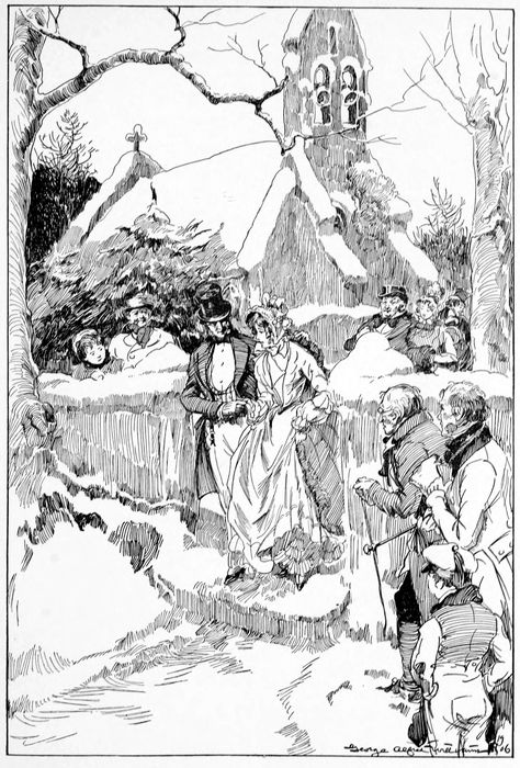 All this was very snug and pleasant: and when the difficulties of the stile were at last surmounted, and they once more entered on the open field, old Wardle informed Mr. Pickwick how they had all been down in a body to inspect the furniture and fittings-up of the house, which the young couple were to tenant, after the Christmas holidays; at which communication Bella and Trundle both coloured up, as red as the fat boy after the tap-room fire; and the young lady with the black eyes and the fur round the boots, whispered something in Emily’s ear, and then glanced archly at Mr. Snodgrass, to which Emily responded that she was a foolish girl, but turned very red, notwithstanding; and Mr. Snodgrass, who was as modest as all great geniuses usually are, felt the crimson rising to the crown of his head, and 47devoutly wished, in the inmost recesses of his own heart, that the young lady aforesaid, with her black eyes, and her archness, and her boots with the fur round the top, were all comfortably deposited in the adjacent county.
