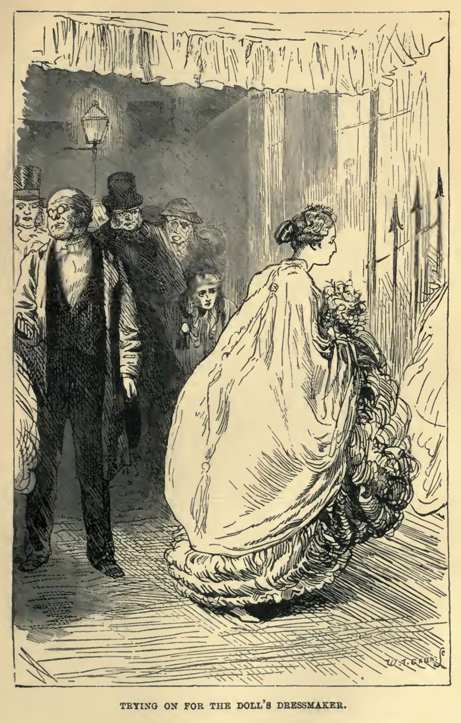 ‘I thought as much,’ remarked Miss Wren, ‘and here is little Miss Harmonses doll waiting for you. She’s folded up in silver paper, you see, as if she was wrapped from head to foot in new Bank notes. Take care of her, and there’s my hand, and thank you again.’