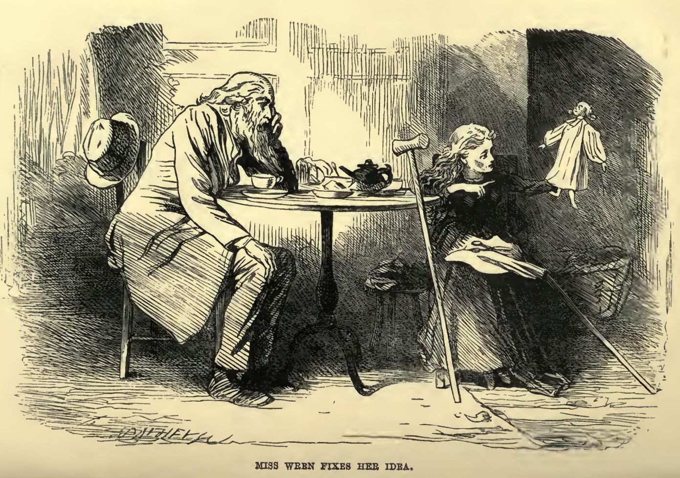 ‘There, there, there!’ said Miss Wren. ‘For goodness’ sake, stop, Giant, or I shall be swallowed up alive, before I know it. And to this minute you haven’t said what you’ve come for.’