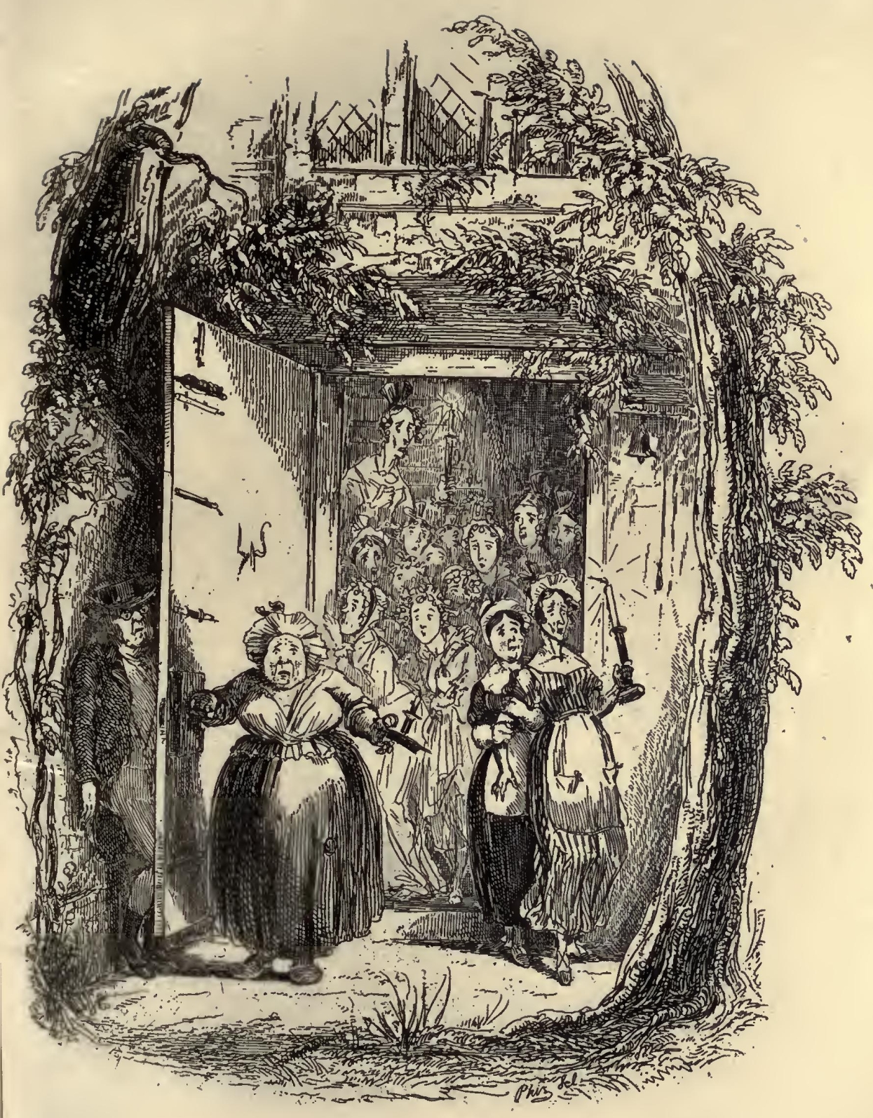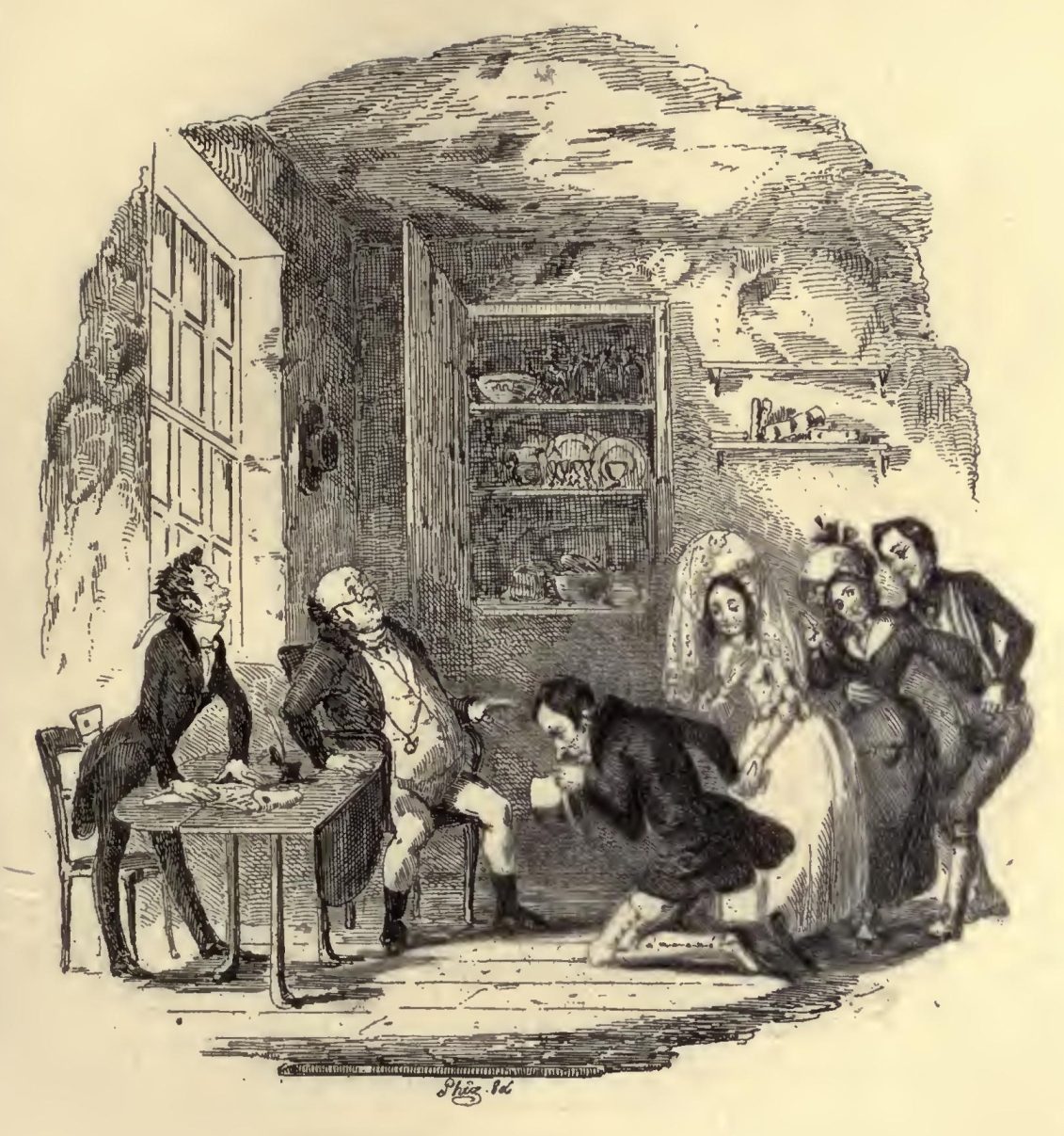 In addition to these points of distraction, Wardle was intrusted with two small letters to two small young ladies who were to act as bridesmaids; upon the receipt of which, the two young ladies were driven to despair by having no ‘things’ ready for so important an occasion, and no time to make them in—a circumstance which appeared to afford the two worthy papas of the two small young ladies rather a feeling of satisfaction than otherwise. However, old frocks were trimmed, and new bonnets made, and the young ladies looked as well as could possibly have been expected of them. And as they cried at the subsequent ceremony in the proper places, and trembled at the right times, they acquitted themselves to the admiration of all beholders.