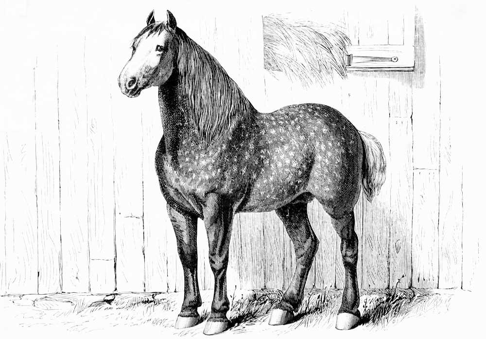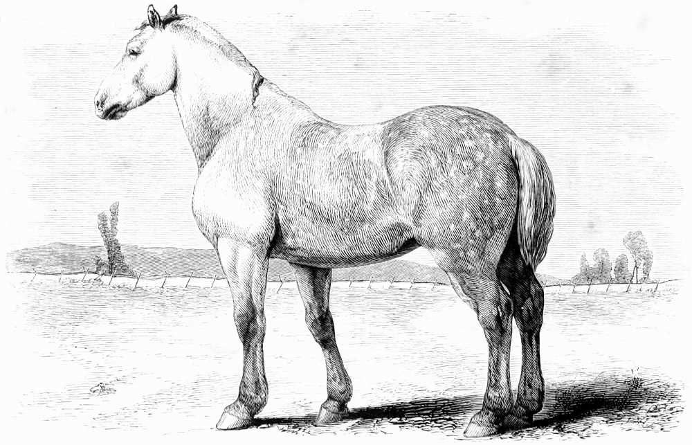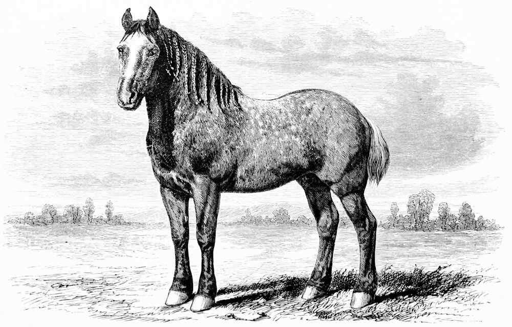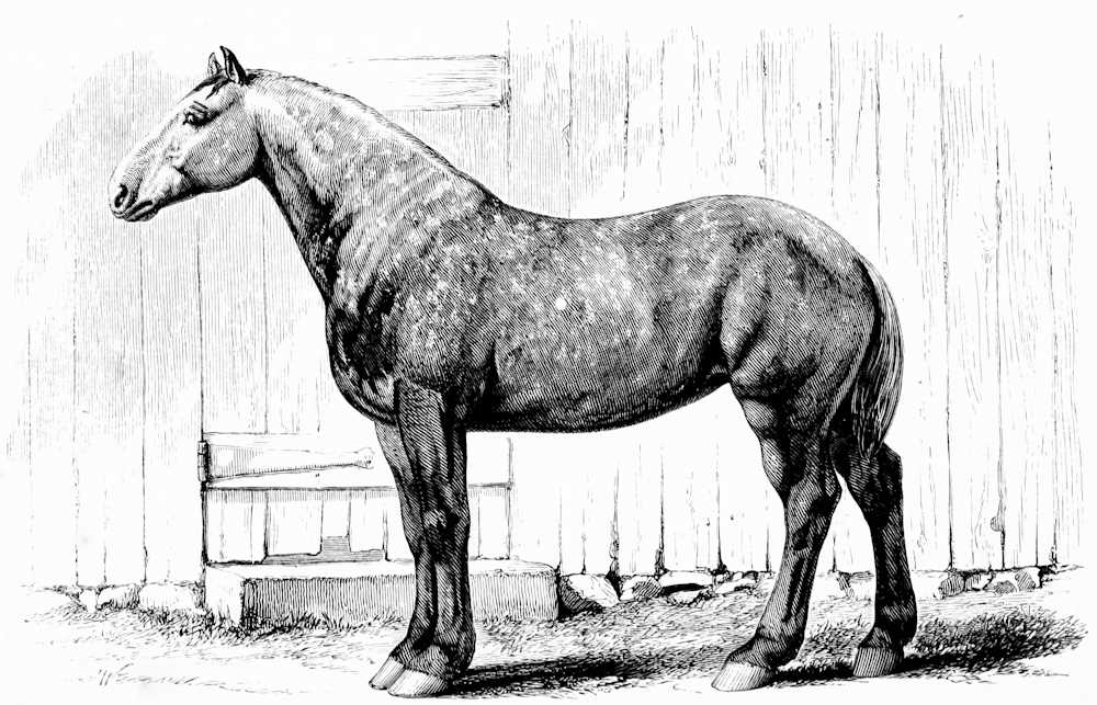 What the Percheron has done in the diligences, mail and post-coaches is known to everybody; and it is useless to repeat it. From one relay to another, never dragging less than two, and more often three thousand pounds, in hot weather and cold, and over hilly, difficult roads, he made his three leagues to the hour easily, and sometimes[Pg 96] four; but this was the “ne plus ultra,” beyond which it was not reasonable to go.