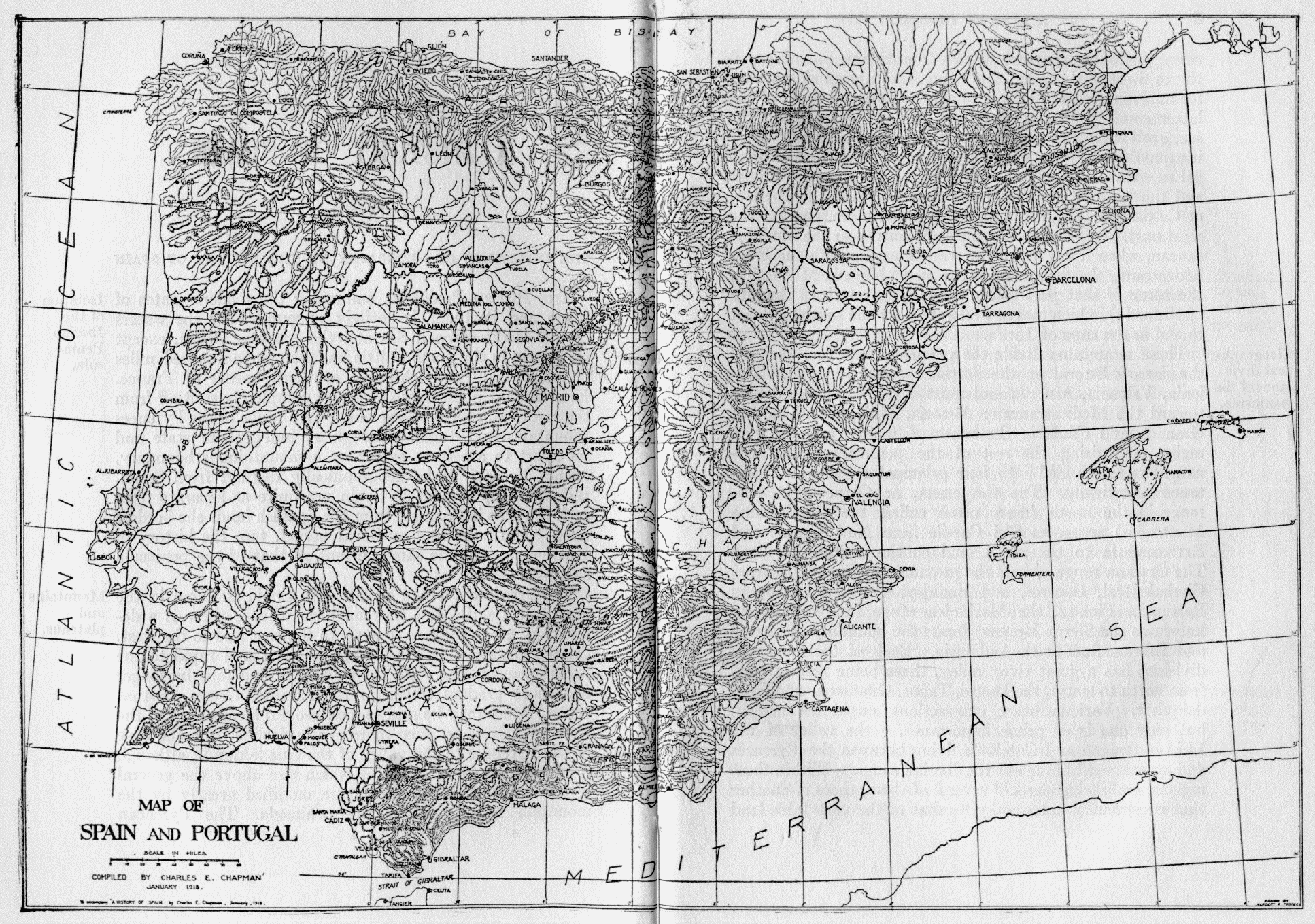 As on previous occasions, so now, the writer finds himself under obligations to his colleagues in the Department of History of the University of California. Professor Stephens has read much of this manuscript and has made helpful suggestions as to content and style. Professors Bolton and Priestley and Doctor Hackett, of the “Bancroft Library group,” have displayed a spirit of coöperation which the writer greatly appreciates. Professor Jaén of the Department of Romance Languages gave an invaluable criticism of the chapter on contemporary Spain. Señor Jesús Yanguas, the Sevillian architect, furnished the lists of men of letters and artists appearing in that chapter. Professor Shepherd of Columbia University kindly consented to allow certain of the maps appearing in his Historical atlas to be copied here. Doctors R. G. Cleland, C. L. Goodwin, F. S. Philbrick, and J. A. Robertson have aided me with much valued criticisms. The writer is also grateful to his pupils, the Misses Bepler and Juda, for assistance rendered.