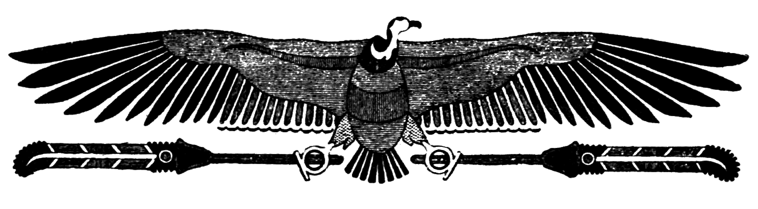 Chapter I. (Page 1.) The goddess of victory in the form of a vulture holding a flabellum or fan of feathers and a signet-ring in each claw.