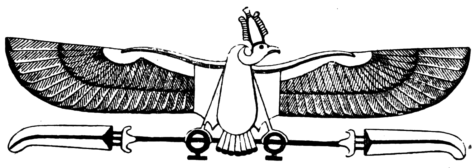 Chapter IV. (Page 26.) The symbol of the god Horus of Edfu, represented as the winged disk of the sun encircled by two Uræus-snakes or cobras.