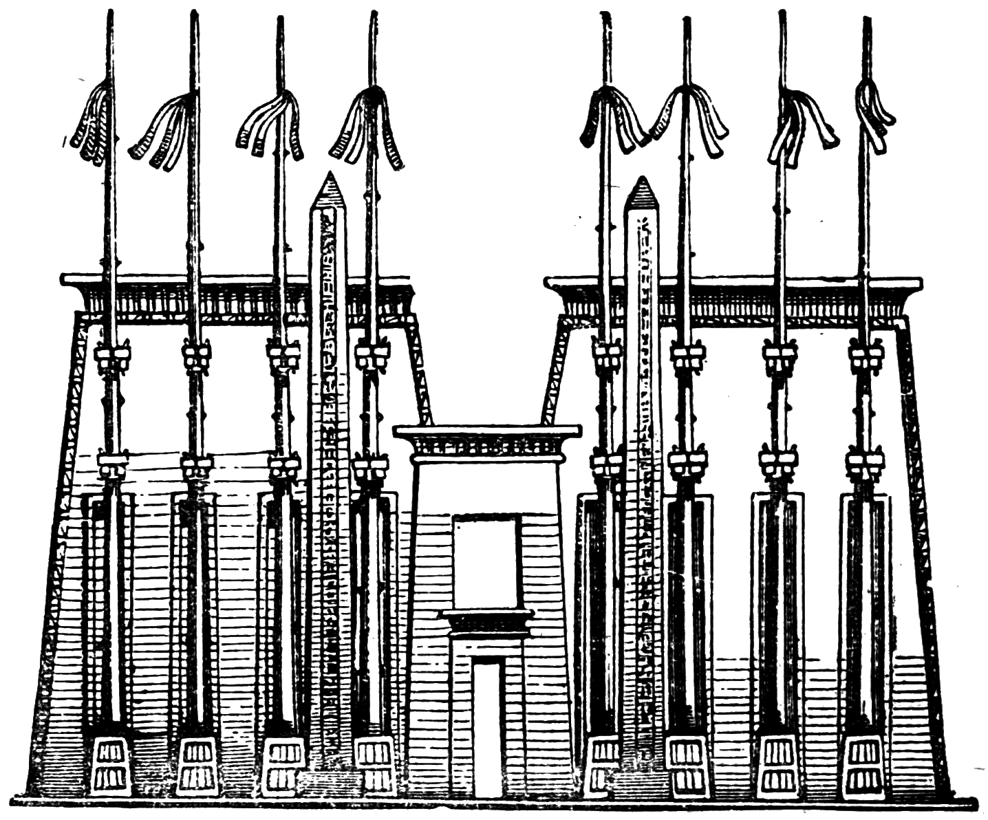 The custom of erecting obelisks in pairs in front of the gates of temples has already been alluded to on page 20 (cf. the picture).