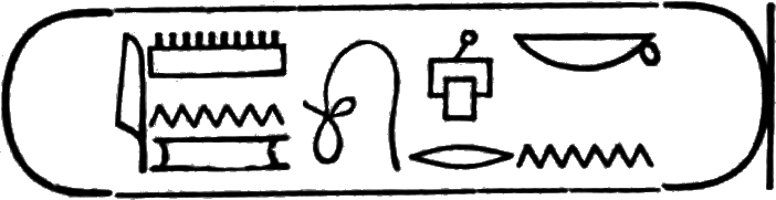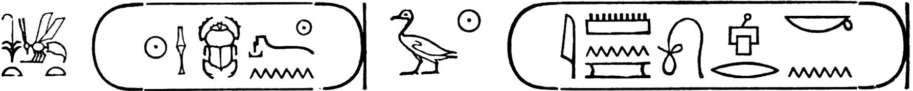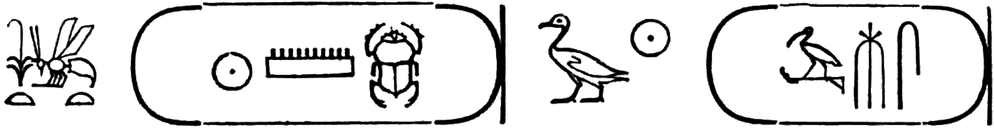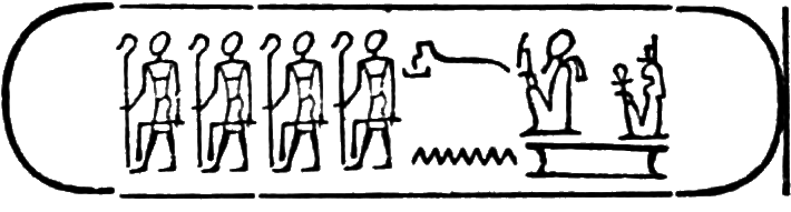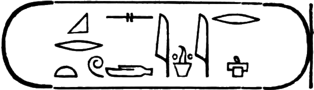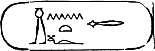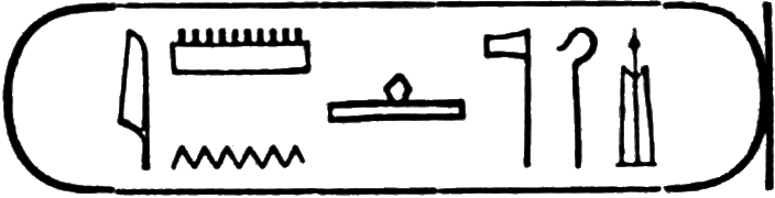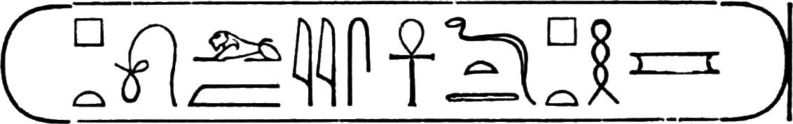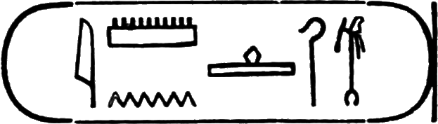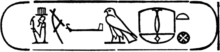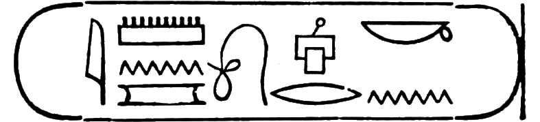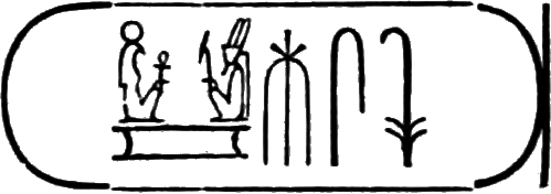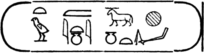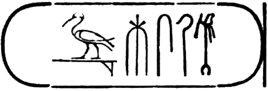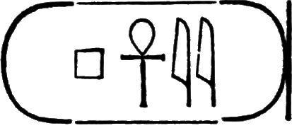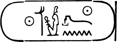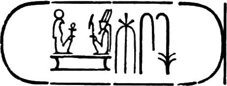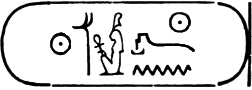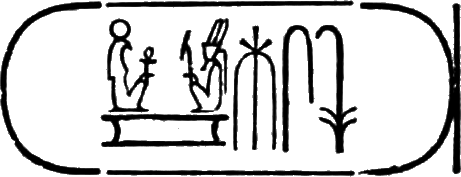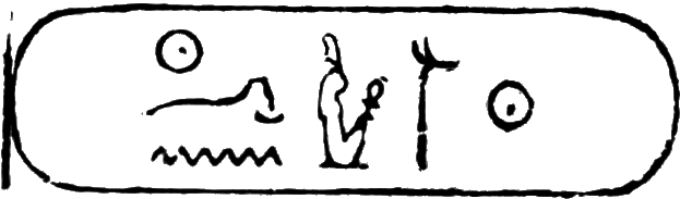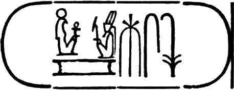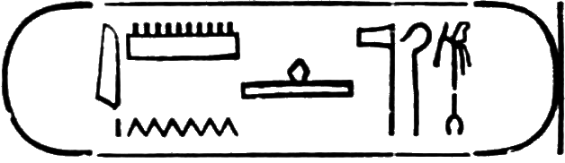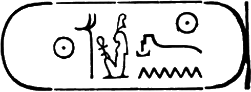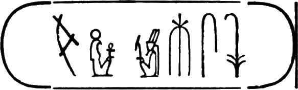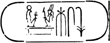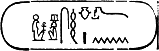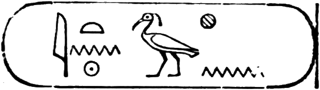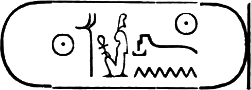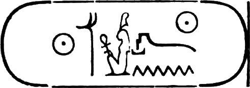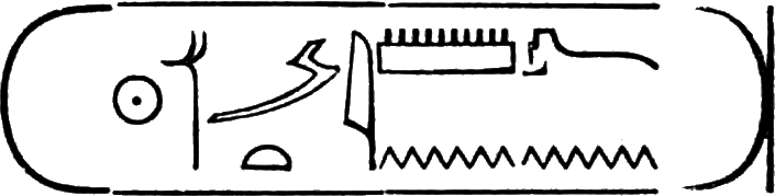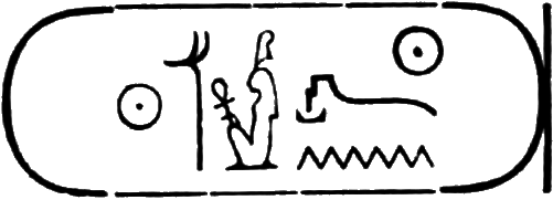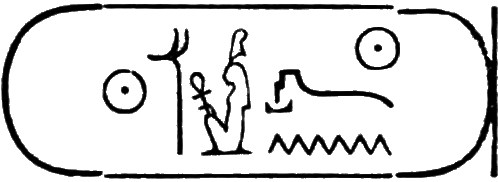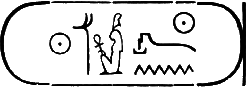 This is the longest of any Egyptian cartouche, and is written in two vertical columns. It stands for the second cartouche given on page 36.